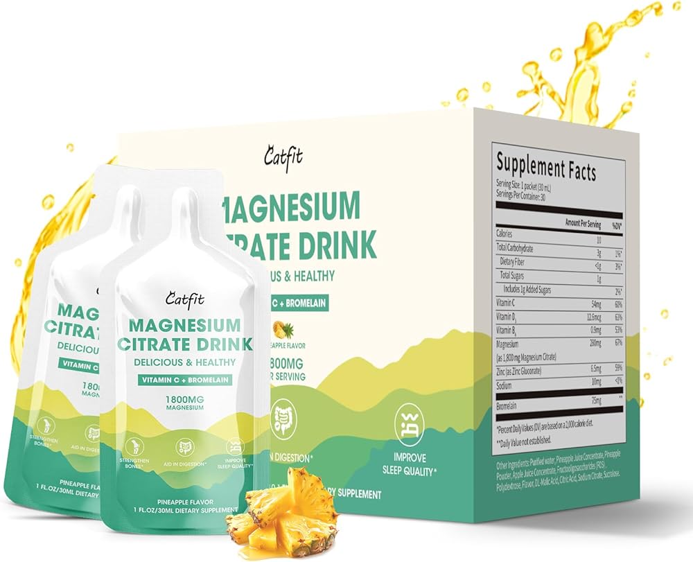 مزيج مغذيات سترات المغنيسيوم: توفر كل حزمة 1 أونصة سائلة من مكمل سترات المغنيسيوم هذا مزيجًا قويًا من العناصر الغذائية الأساسية، بما في ذلك 1800 ملجم من سيترات المغنيسيوم، 75 ملجم من البروميلين، 54 ملجم من فيتامين C، 12.6 ملجم من فيتامين د 3، 0.9 ملجم من فيتامين ب 6، 6.5 ملغ من الزنك، و10 ملغ من الصوديوم. يتم اختيار كل مكون بعناية لتعزيز صحتك العامة.
