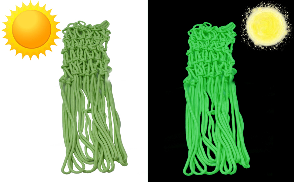 تتوهج في الظلام، ستتوهج شبكة كرة السلة المضيئة التي تعمل بالطاقة الشمسية في الليل والغسق، ومن السهل على لاعبي كرة السلة الرؤية والتصويب والتسجيل حتى في أحلك الأماكن. إنها ممتازة لممارسة مهارات الرماية.