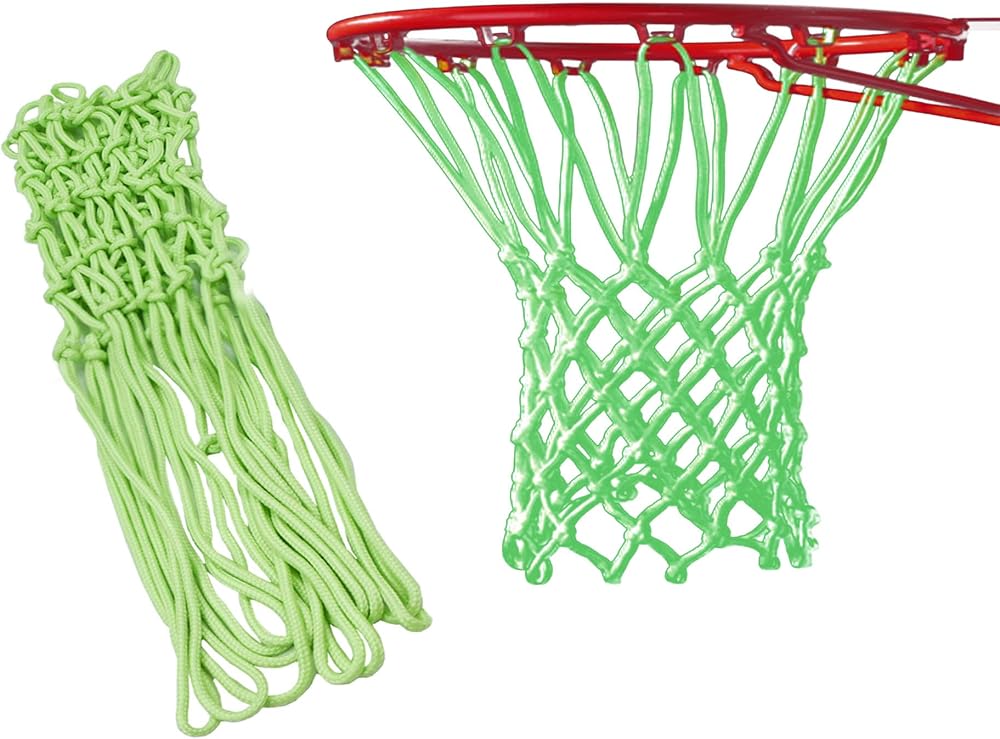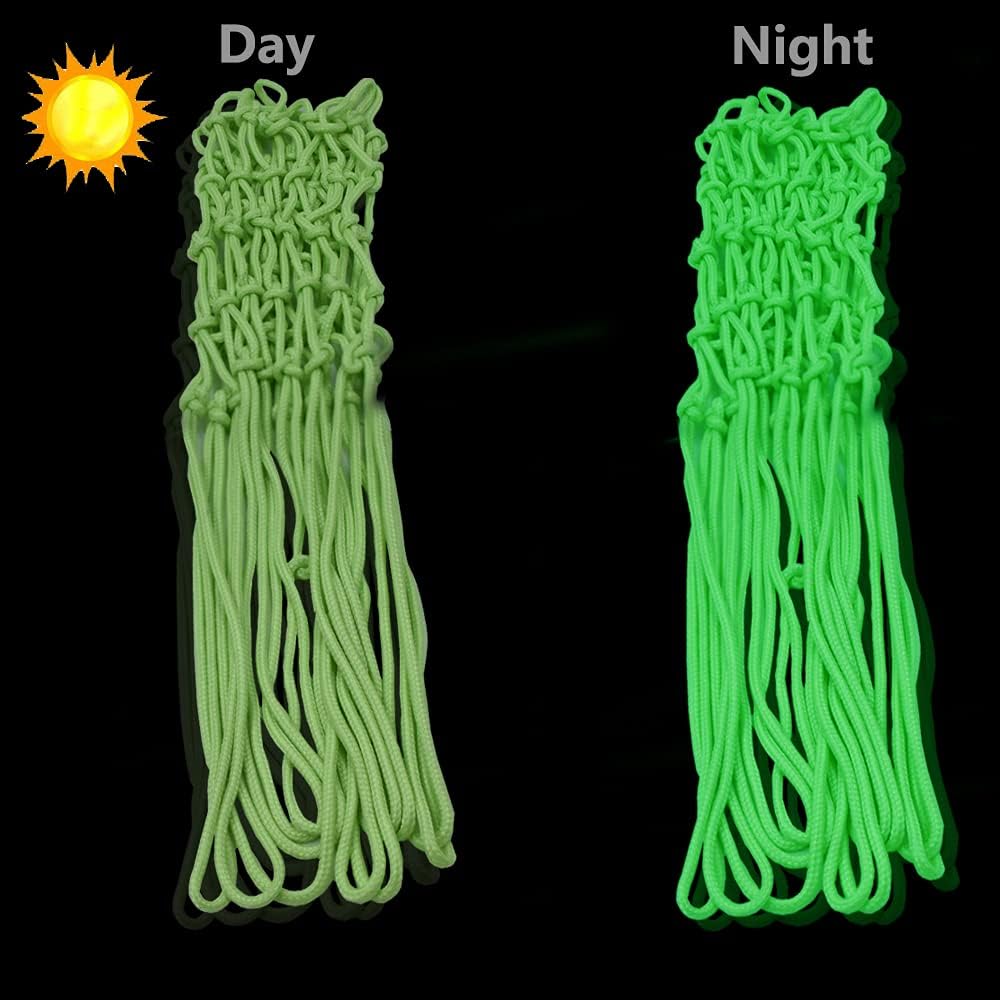 شبكة كرة السلة الليلية تتوهج في الظلام، شبكة دائرية مضيئة في الهواء الطلق، شبكة كرة سلة مضيئة تعمل بالشمس في الهواء الطلق، شبكة كرة سلة مضادة للسوط، مادة نايلون حجم قياسي للمدرسة الرياضية الخارجية