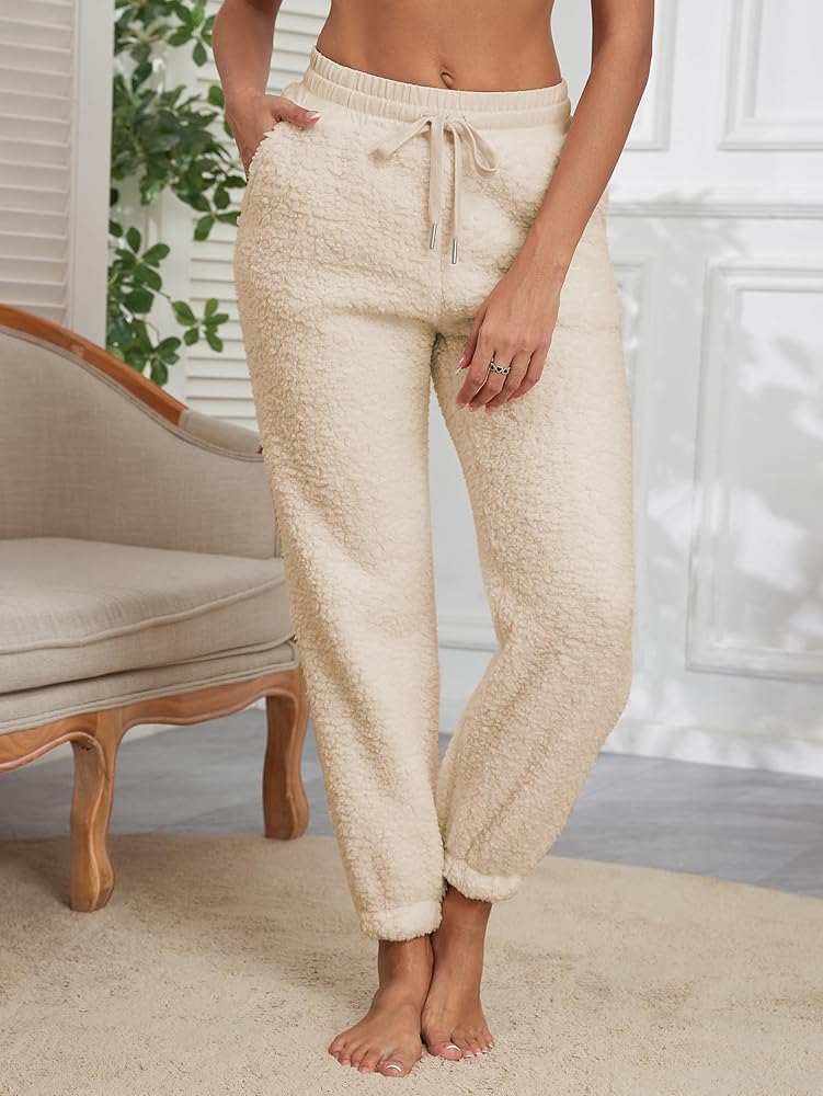 دافئ ومريح: بنطال رياضي نسائي مصنوع من الصوف بنسبة 100% من البوليستر. سراويل بطانية مصنوعة من الشيربا الصناعي مع نسيج سميك غامض وملمس ناعم زبدي يوفر الدفء والراحة في أيام الشتاء الباردة