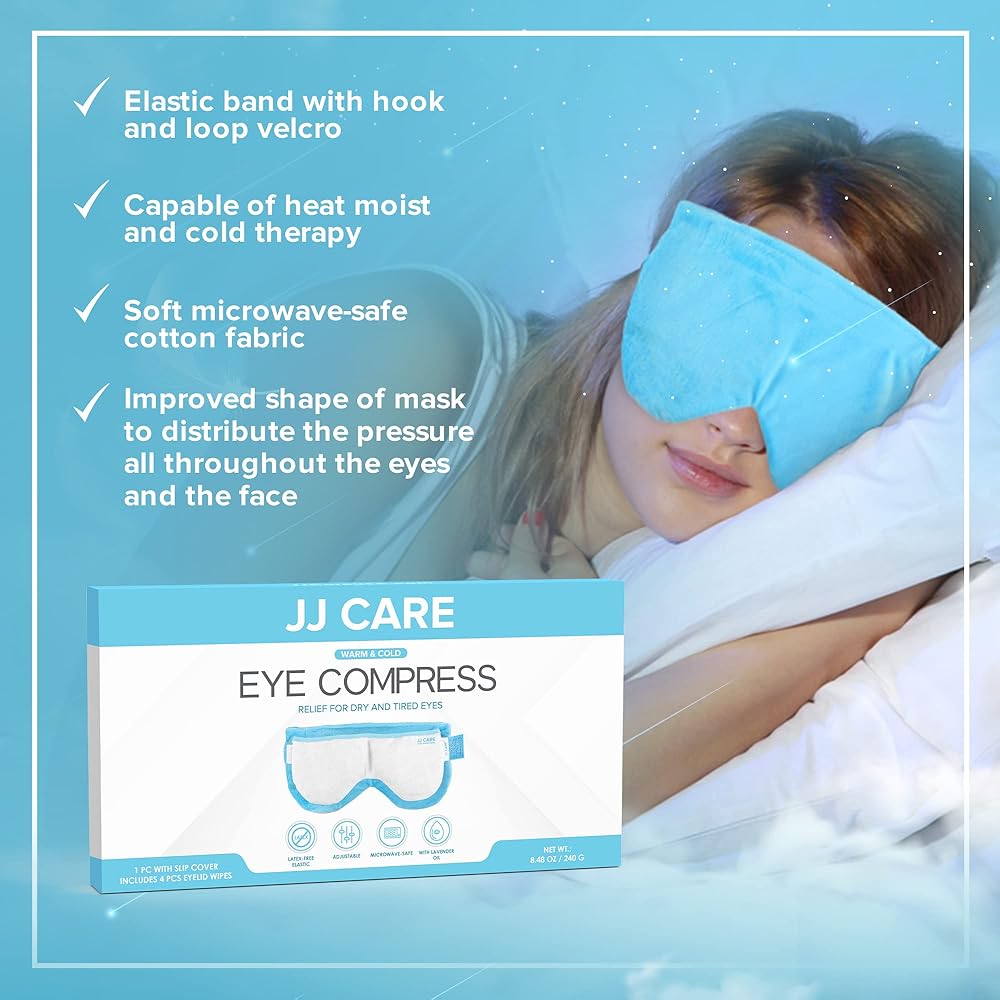 JJ CARE ضغط حراري رطب للعين، تخفيف الضغط الحراري للعين الجافة، قناع العين القابل للاستخدام في الميكروويف برائحة اللافندر، ضغط بارد وحرارة للعيون، وسادة تدفئة للعين للعيون المتهيجة