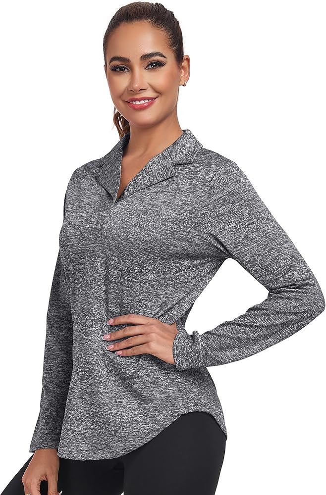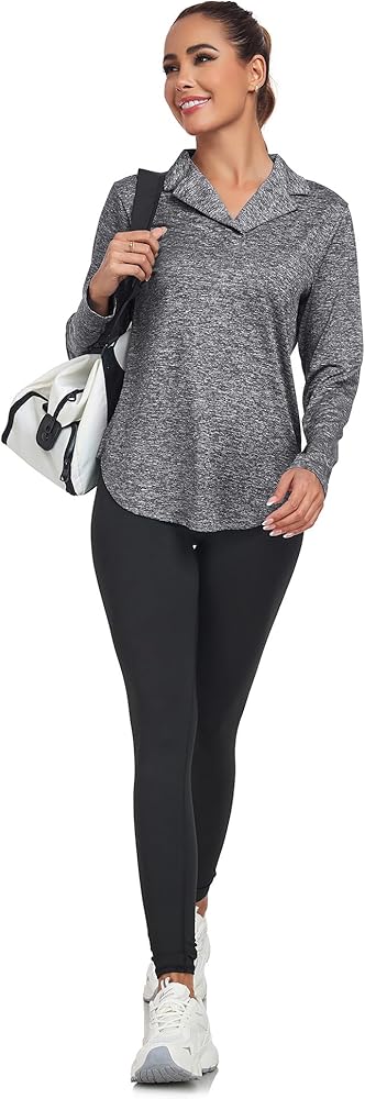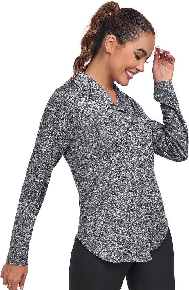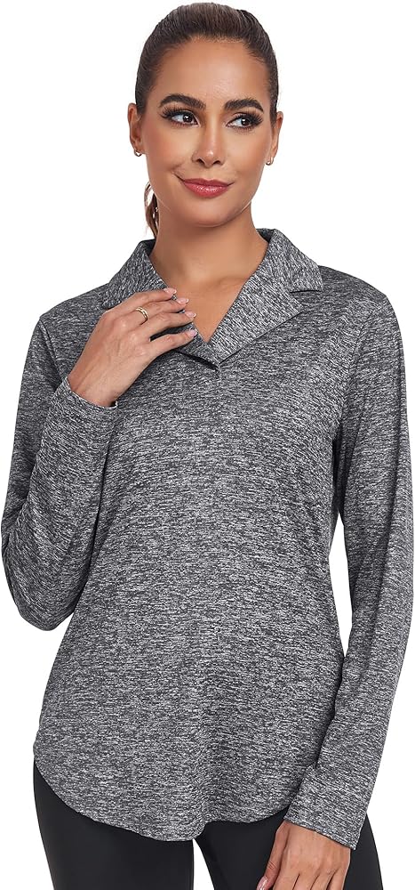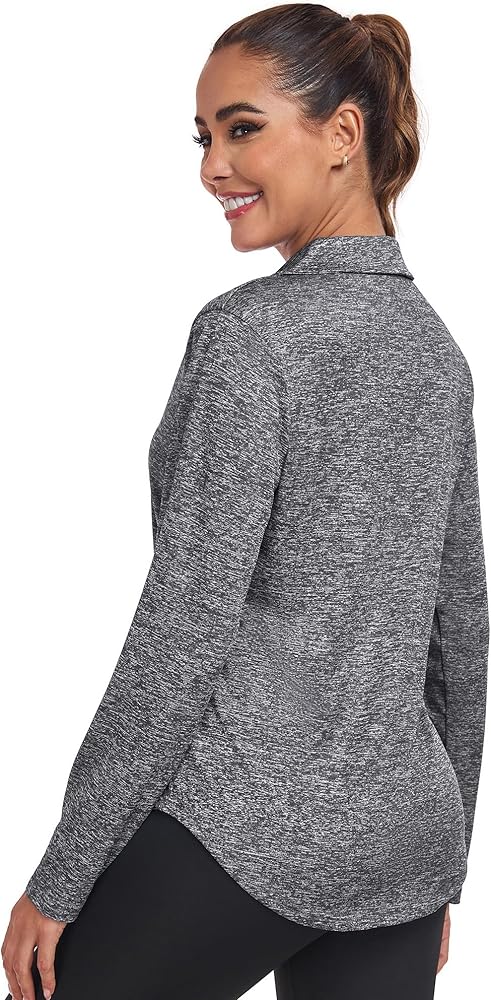 قمصان التنس النسائية طويلة الأكمام ناعمة الملمس، وتمتد في 4 اتجاهات، ومسامية وخفيفة الوزن، ويمكن أن تبقيك تشعر بالراحة أثناء ممارسة الرياضة في الهواء الطلق.