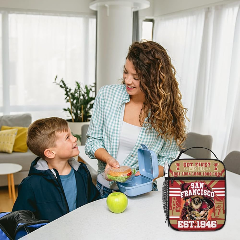 Intimate Design: The Football lunch bag has two ways to carry, you can use the top handle or hang the handle on the backpack.