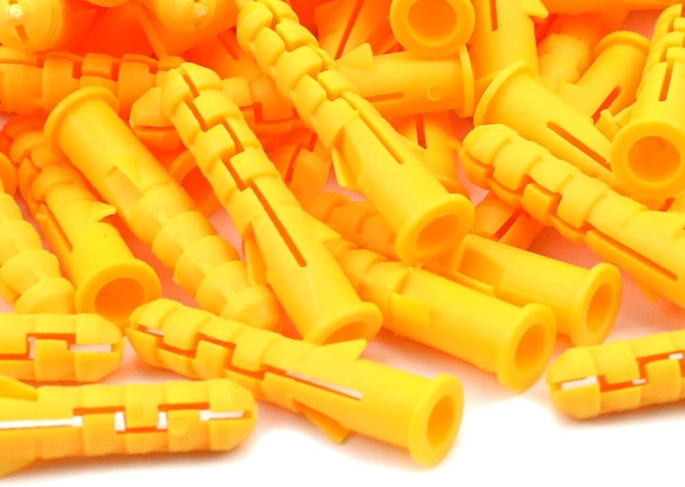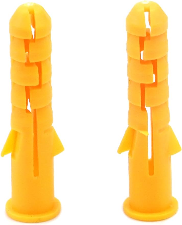 MATERIAL - The plastic wall anchors are made of yellow PP, with a barb-type expansion curve and side lug, which can fully expand while increasing friction to prevent rotation and slipping during installation