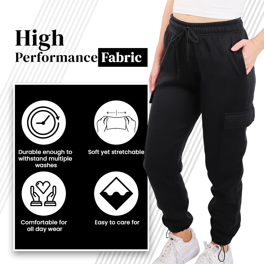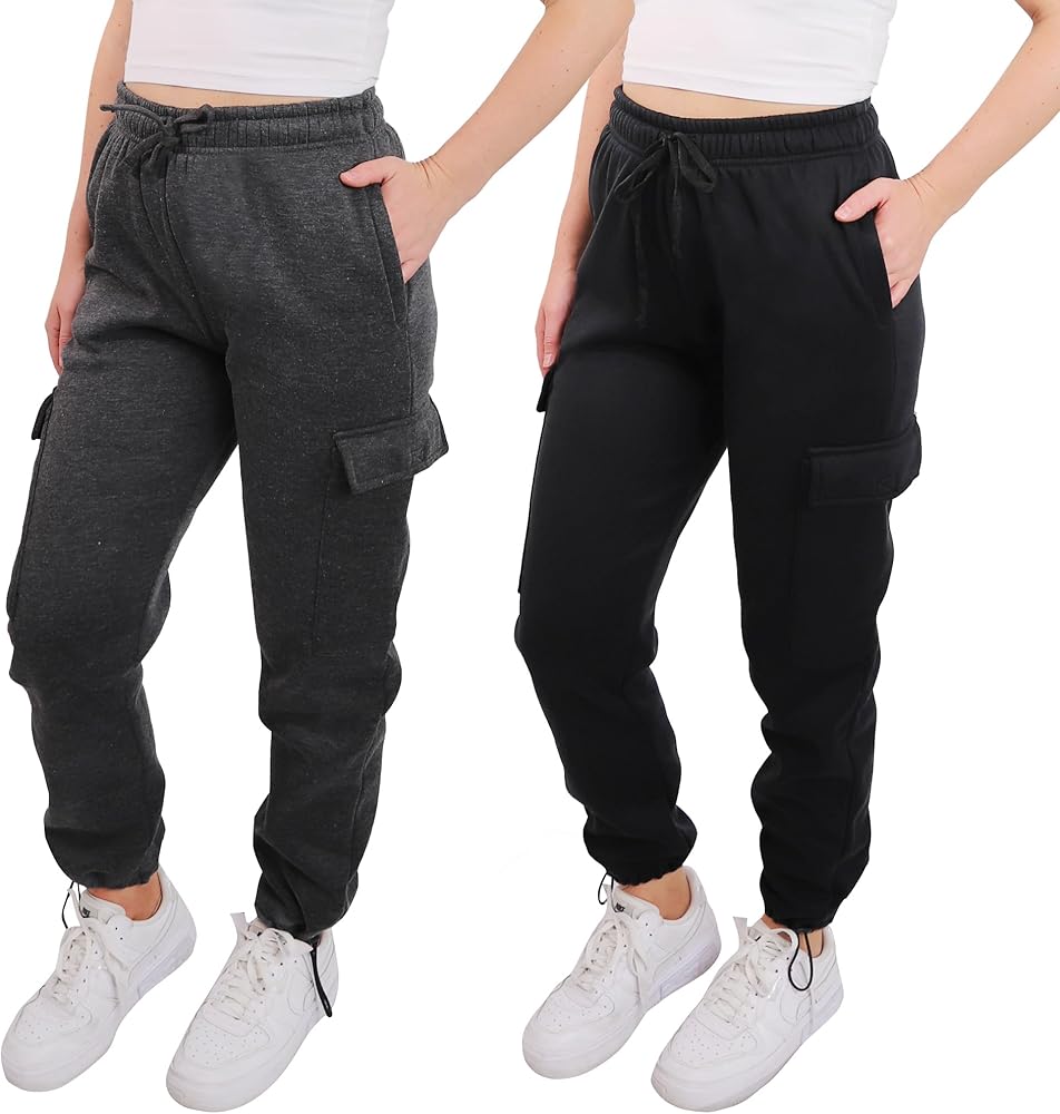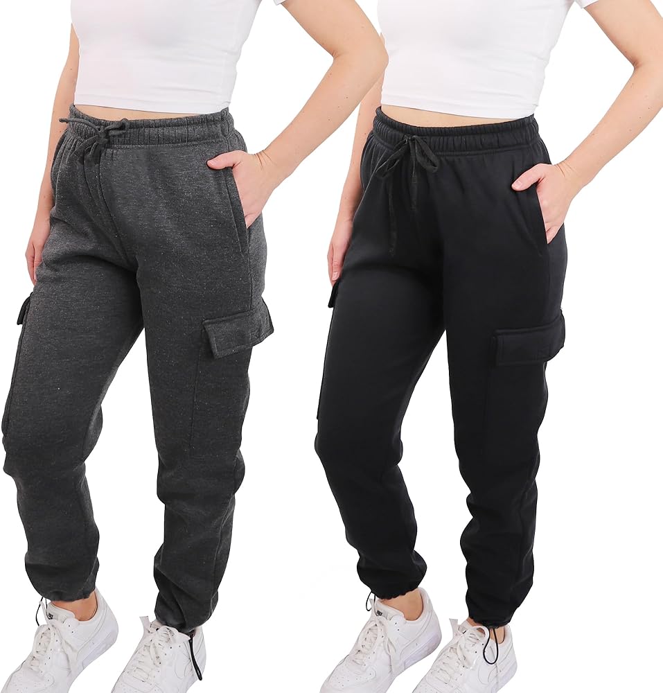 PACK of 2 | BIG BANG FOR THE BUCK - A great value pack deal of 2 womens cargo jogger pants. Our athleisure fleece cargo joggers sweatpants are breathable, lightweight stretchy super soft and comfy, making them perfect for all-day casual lounging, home wear and outdoor running, walking, hiking, gym, workout, weightlifting activities