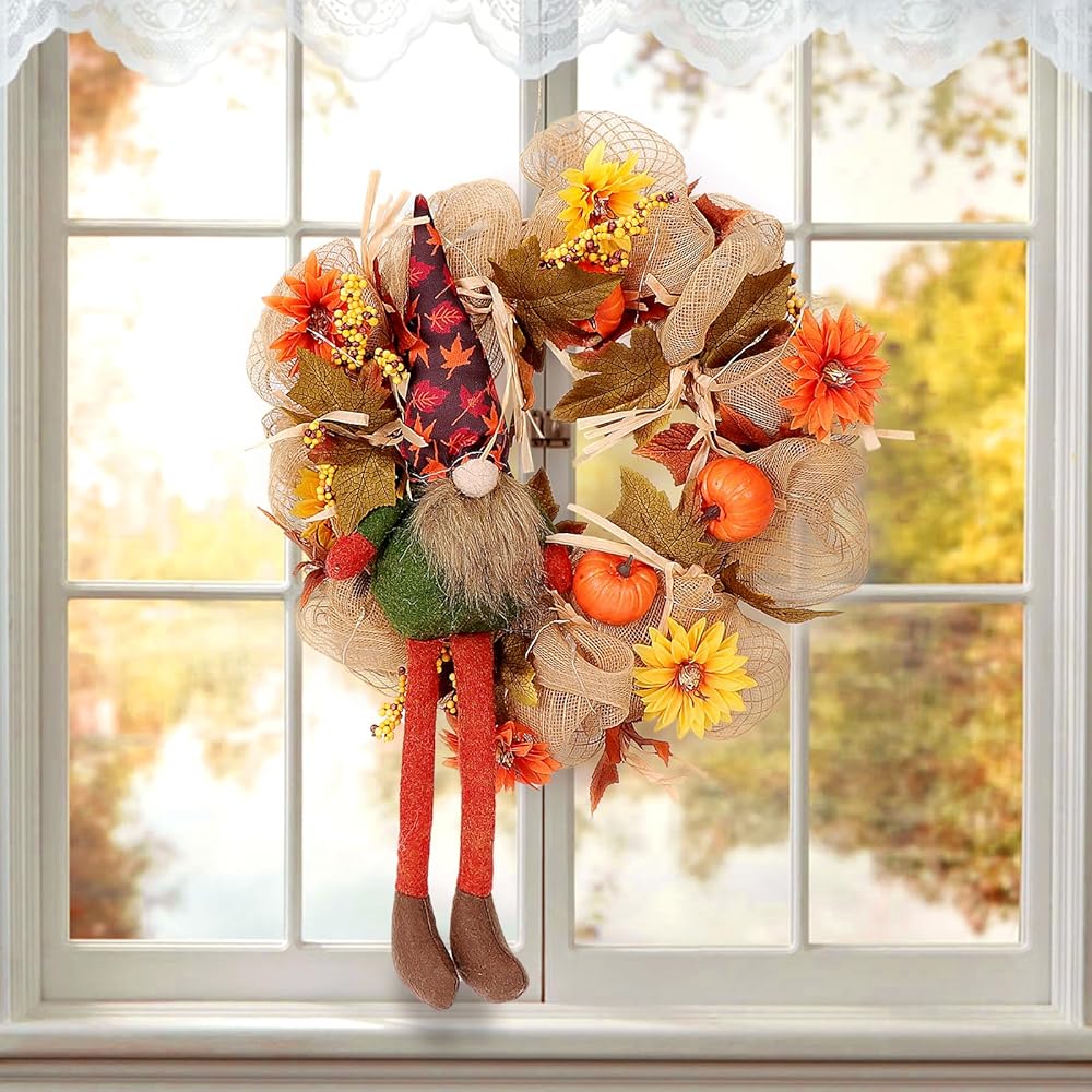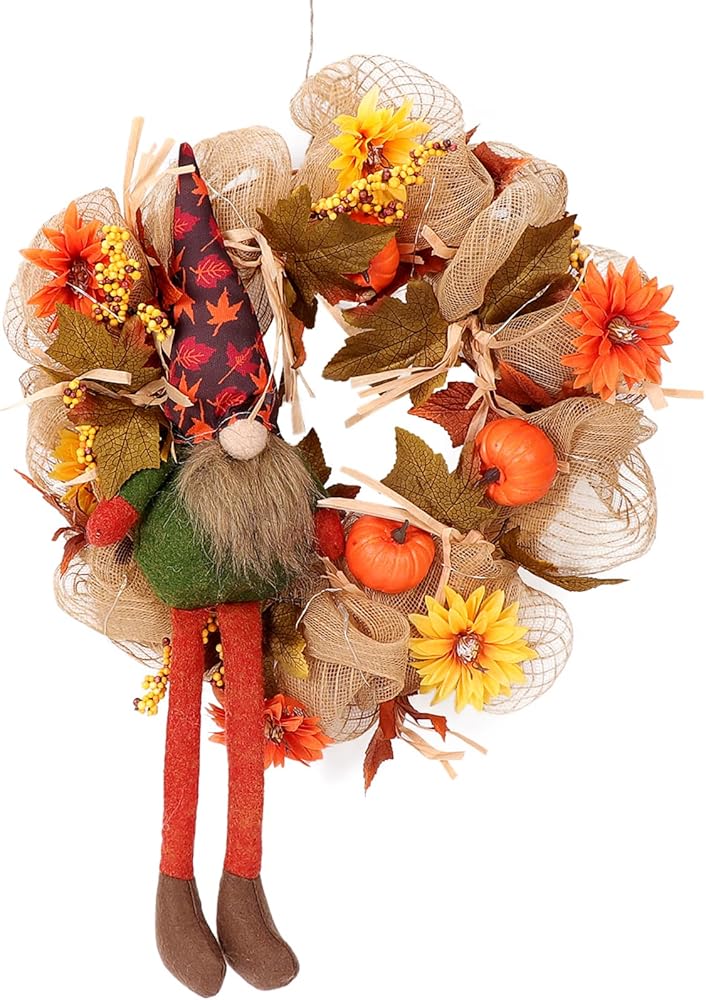 ديكور متعدد الأغراض: يمكن تعليق إكليل الخريف هذا على الأبواب الأمامية وغرف المعيشة والمدافئ وبيوت المزرعة والجدران والنوافذ والشرفات. تجلب لك أوراق اليقطين والأوكالبتوس المشرقة فرحة الحصاد. مناسب لجميع أنواع العطلات مثل عيد الشكر والحصاد، سيمنحك إكليل الخريف الخاص بنا صحبة أطول وسعادة دائمة مقارنة بالزهور الحقيقية.