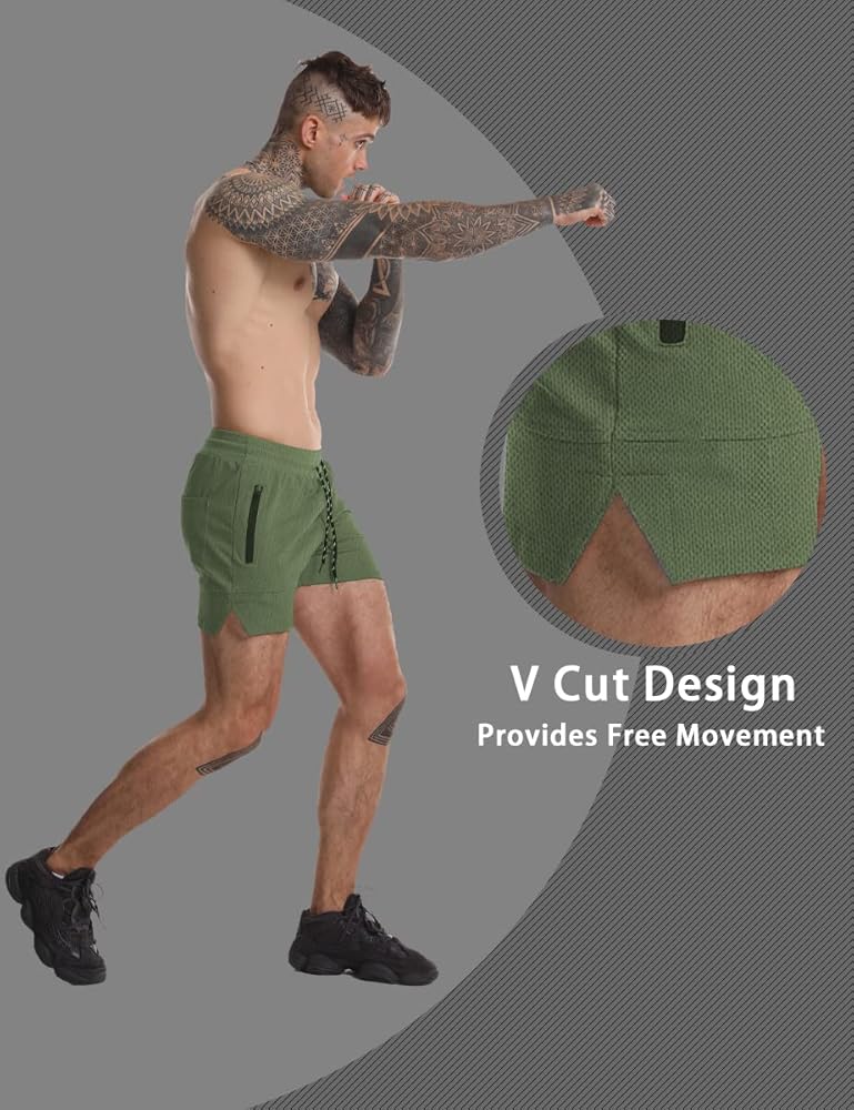 【تصميم بحاشية على شكل حرف V】هذا الشورت القصير الرجالي ملائم بشكل مريح مع تصميم ساق على شكل حرف V يوفر حركة غير مقيدة، مما يمنح ساقك مساحة أكبر.