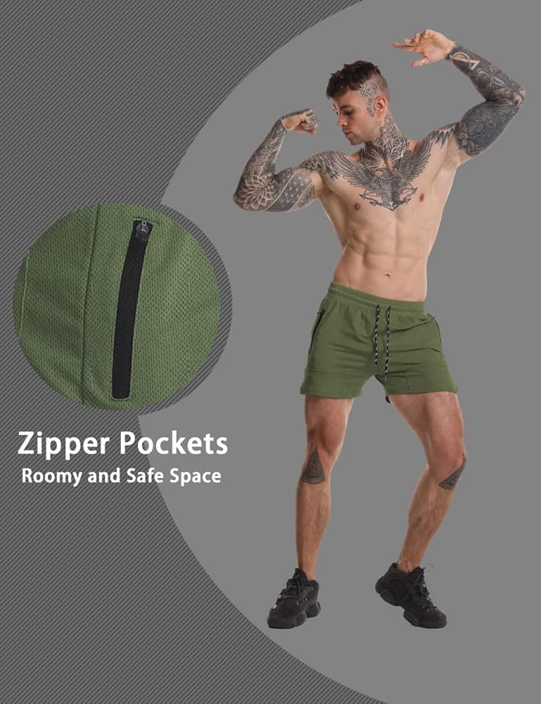 【مميزات النسيج】يستخدم شورت التمرين الرجالي أقمشة عالية الجودة. مادة ناعمة للغاية وخفيفة الوزن ومريحة ومسامية تمتص العرق وتجف بسرعة. سهل التنظيف، ويحتفظ بشكله حتى بعد عدة غسلات.