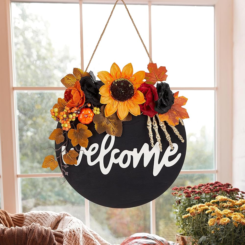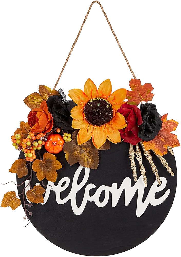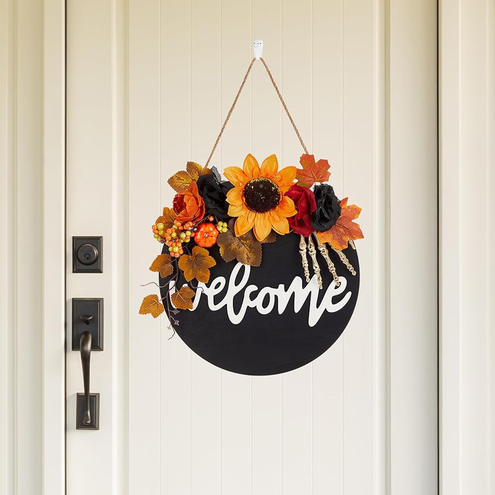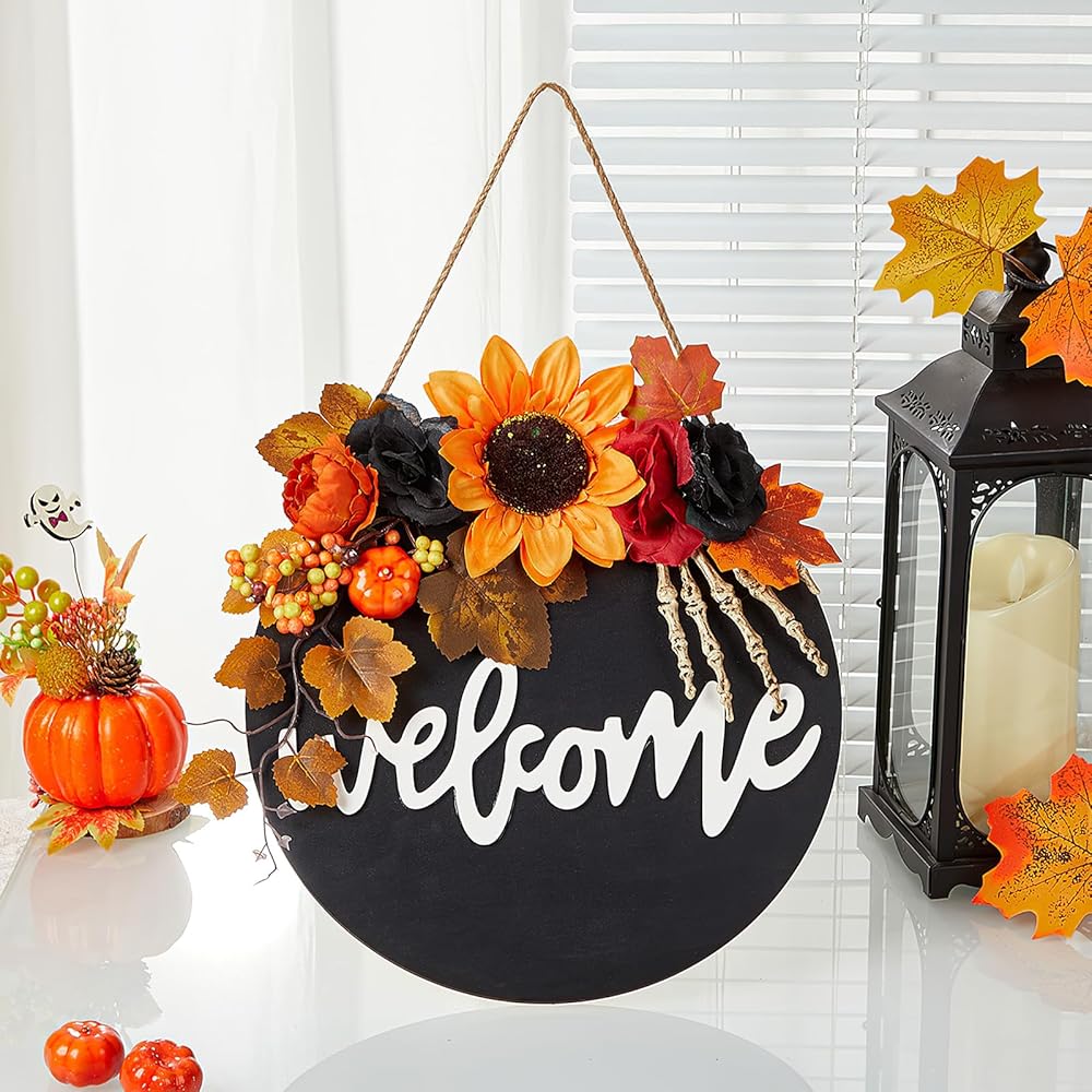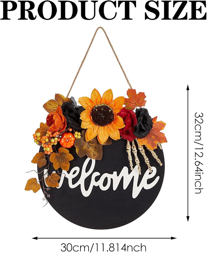 أكاليل الهالوين: مع ما مجموعه 5 أكاليل عيد الهالوين للاختيار من بينها، والتي تتميز بالسحرة والخفافيش والجماجم والغربان، فإن إكليل الخريف المصنوع يدويًا هذا يجعل حفلة الهالوين الخاصة بك أكثر رعبًا. مجموعة الألوان والعناصر تجعل من هذا الطوق ديكورًا مثاليًا للهالوين