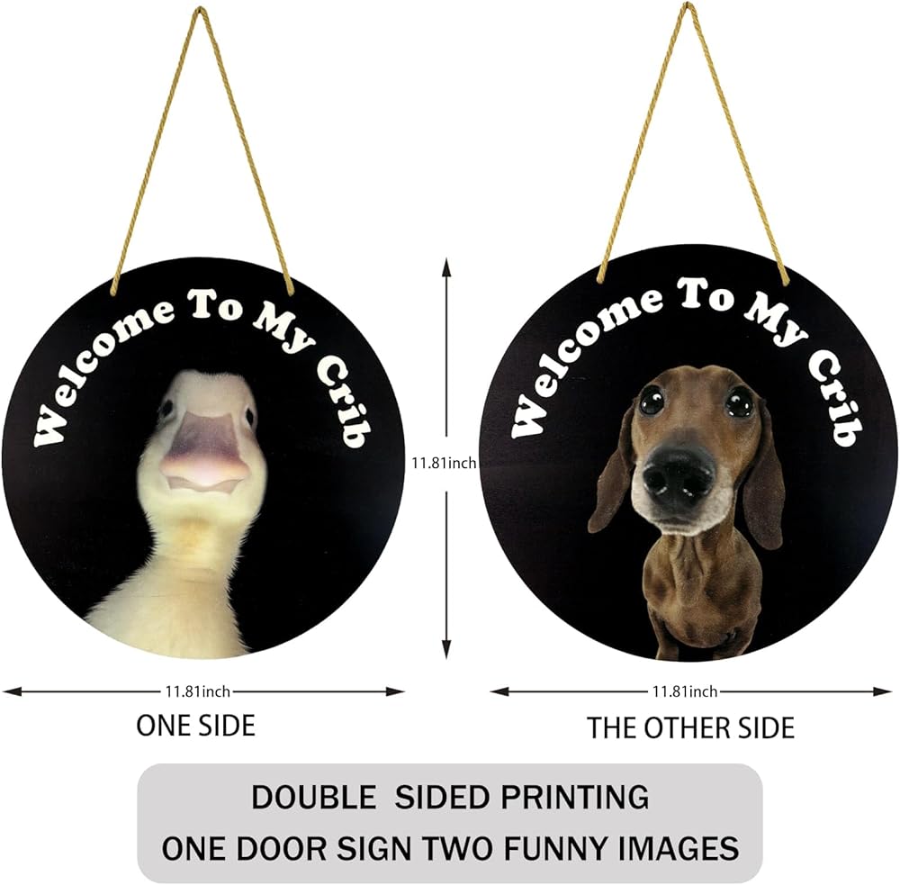 This funny cool hilarious DOUBLE SIDED door sign adds a touch of warmth and personality to any entrance, brings laughter to you and your guests friend classmate colleague homies, it is a good Christmas birthday holiday gift present.