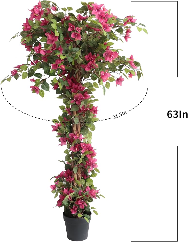 واقعية للغاية: تتميز شجرة زهور البوغانفيليا الاصطناعية بطول 5 أقدام بملمس واقعي وألوان زاهية، وتم تصميمها بعناية لتقليد مظهر النباتات الحقيقية. تتميز الأوراق بملمس واضح وملمس ناعم، ويتم معالجة الجذع بشكل طبيعي ومتشابك بالكروم لجعله يبدو أكثر واقعية ويجعلك أقرب إلى الطبيعة.