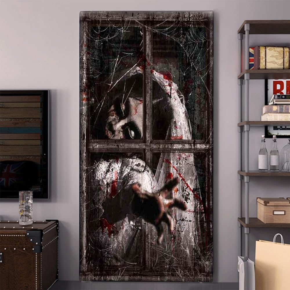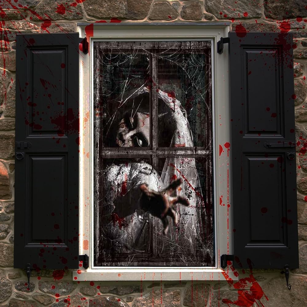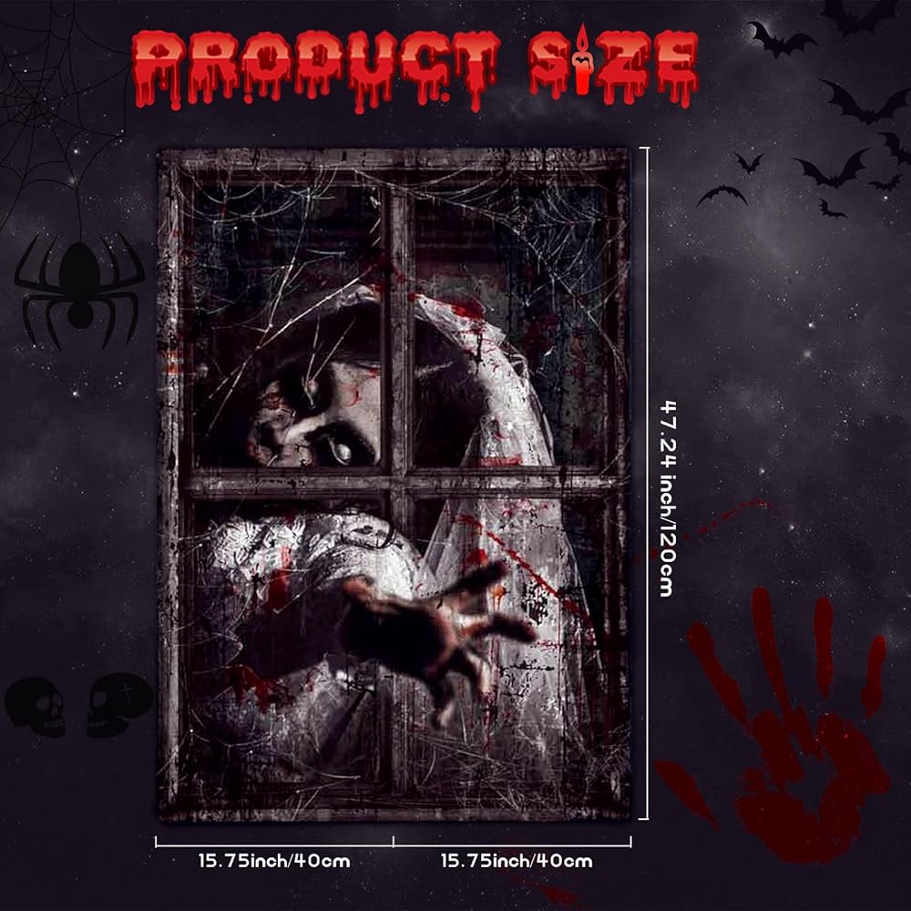 ملصقات نافذة ديكورات الهالوين: ملصقات نافذة مخيفة أكبر جدًا، ملصقات مخيفة، بصمة يد شبح دموية لديكور الهالوين، غطاء باب المنزل المسكون، نافذة مهجع المدرسة المخيفة