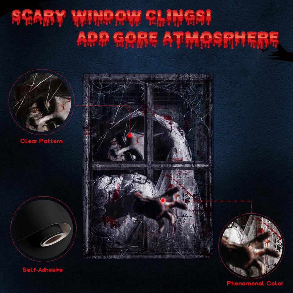 • 【مادة ممتازة وسهلة الاستخدام】ملصقات نافذة الهالوين مصنوعة من ورق فاخر، كما أن ملصقات نوافذ الهالوين الكبيرة سهلة التركيب بحيث لا تستخدم الشريط، إذا كنت لا ترغب في استخدامه، فقط قم بتمزيق ديكورات نافذة الهالوين المخيفة، بشكل مثالي. تهيئة المسرح لحفلتك ذات الطابع الرعب أو اللعب التظاهري.