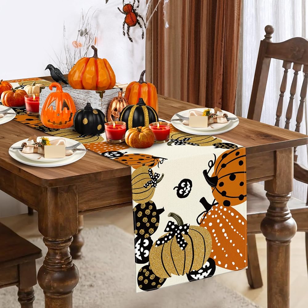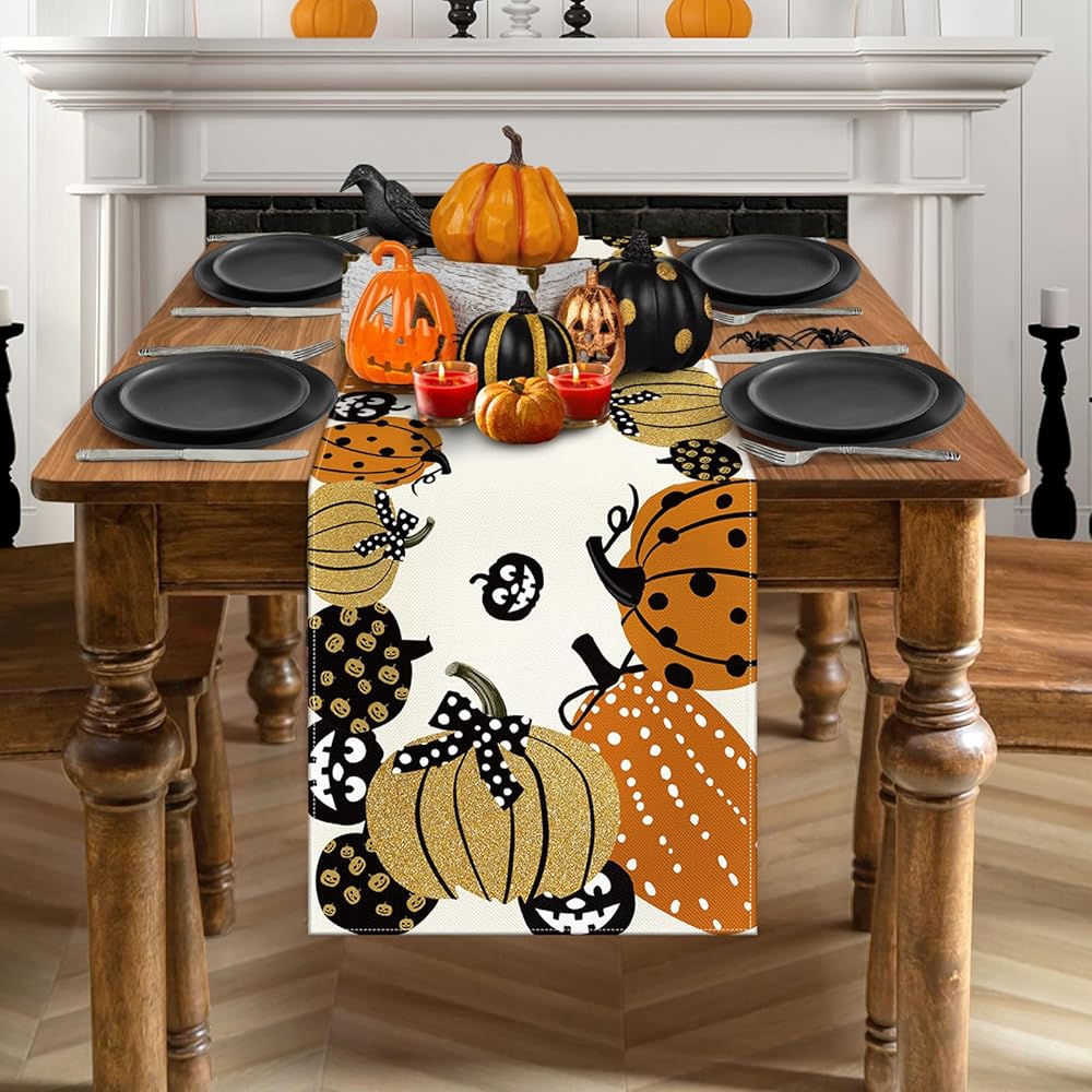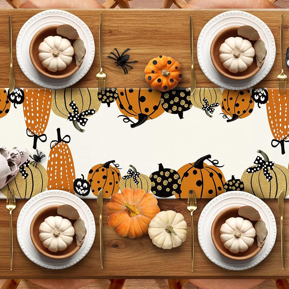 🥳[تصميم الهالوين] أضف رعب الهالوين إلى منزلك مع مفرش الطاولة المزخرف المفصل بشكل رائع والذي من المؤكد أنه سيضفي إشراقة على أي غرفة. يقوم المحترفون بتصميم مفارش المائدة الخاصة بنا وتأتي في 3 أنماط، مما يضمن أسلوبًا نابضًا بالحياة وأنماط فريدة توفر لك طرقًا إبداعية وملهمة لتزيين منزلك.