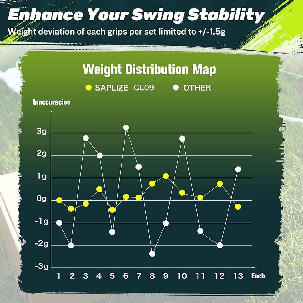 تعزيز ثبات التأرجح: يقتصر انحراف الوزن لمجموعة المقابض الـ 13 على +/- 1.5 جم. بالمقارنة مع معيار الصناعة +/- 3 جم، فإن هذا سيعزز بشكل كبير ثبات التأرجح لديك