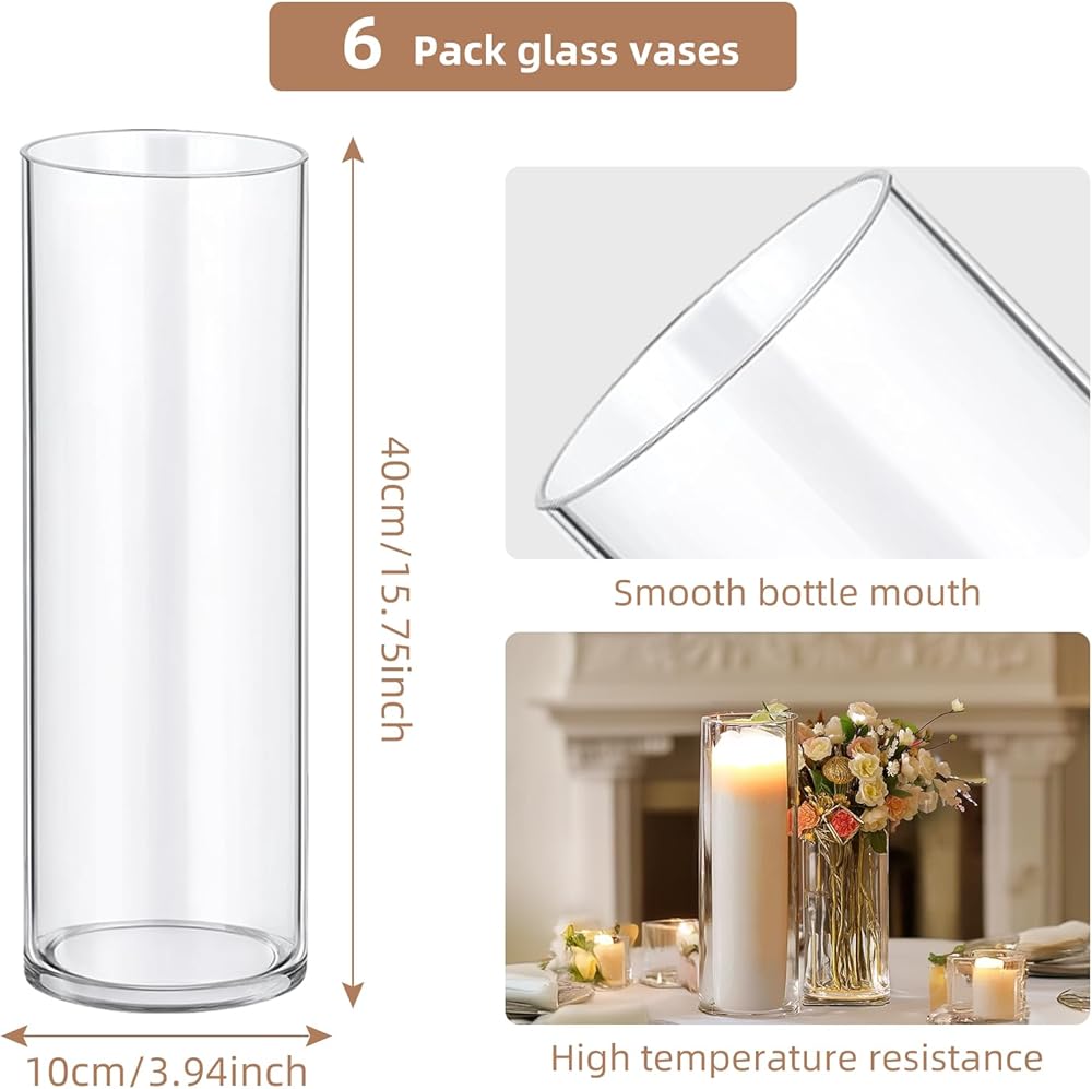 6 عبوات من المزهريات الزجاجية الأسطوانية للقطع المركزية، مزهرية زهور شفافة بطول 40.64 سم، حامل شموع عائمة على شكل إعصار لديكور المنزل والطاولة المركزية