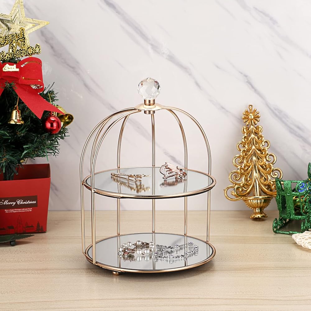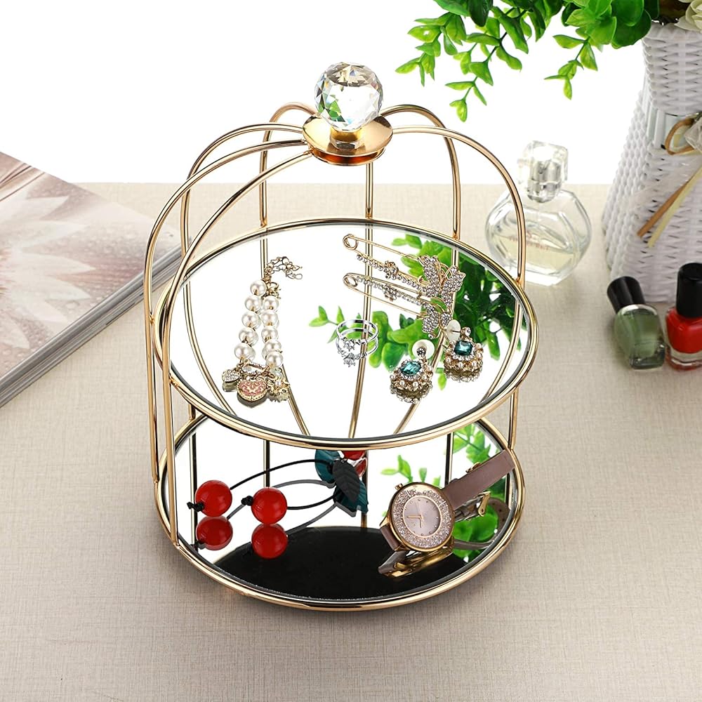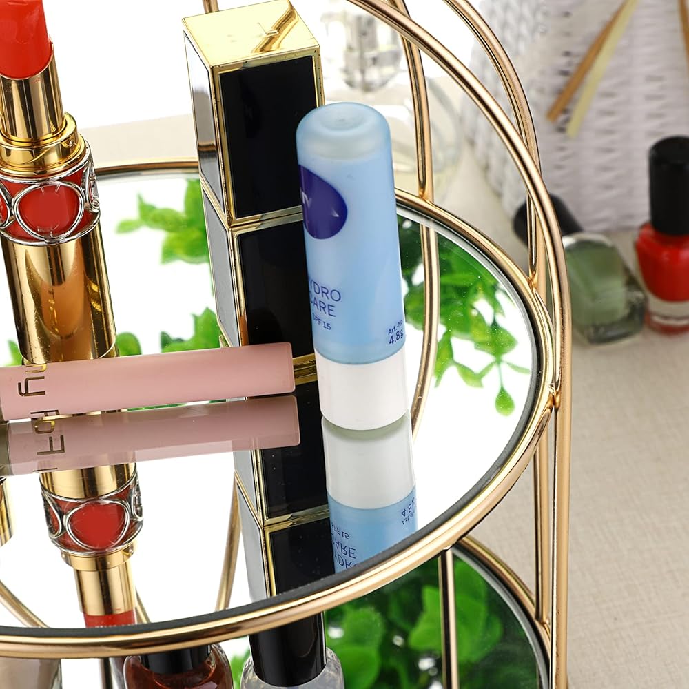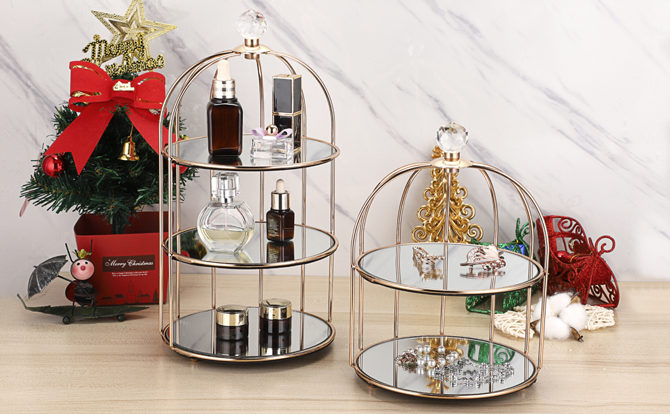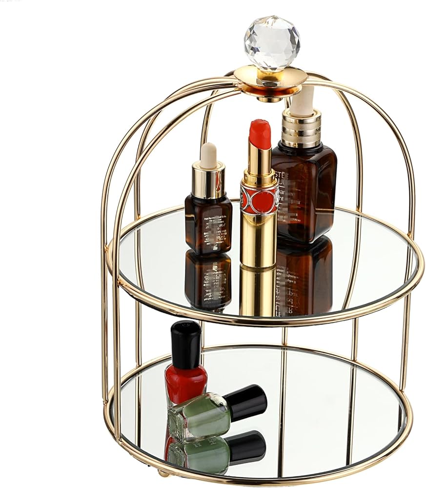 طبقة مزدوجة - تصميم مفتوح بدون قفل وتصميم قاعدة مرآة مزدوجة الطبقات مثالي لتنظيم المجوهرات والعطور والزينة ومستحضرات التجميل وفرشاة المكياج والعناية بالبشرة والخواتم والأقراط والحلي ومزهرية الزهور وما إلى ذلك. عرض رائع على خزانة الملابس والحمام والطاولة كونترتوب