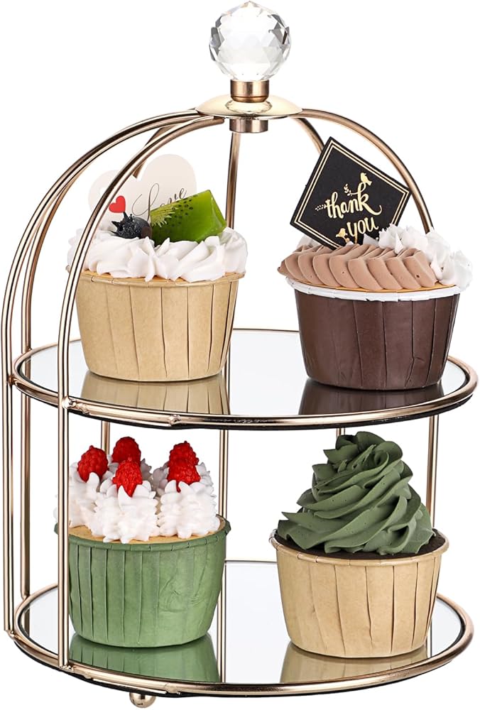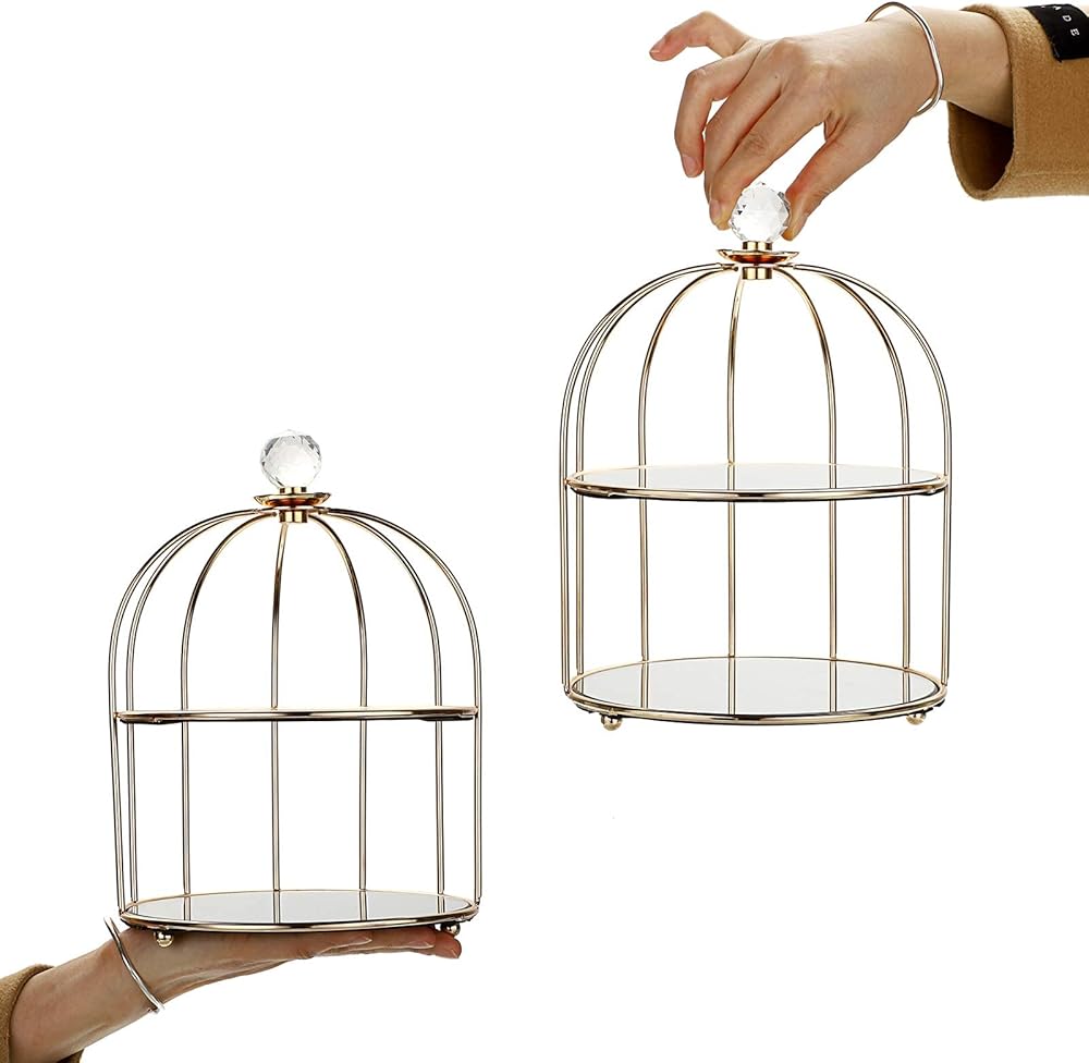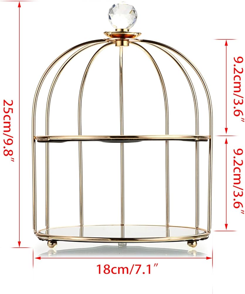 تصميم قفص جميل - يتميز قفص الطيور الذهبي المستدير بإطار معدني، قوي ويدوم طويلاً، كما أن طلاء الرش الذهبي المعدني وقاعدة المرآة تجعل قفص الطيور جميلاً وأكثر روعة، مع كرة متلألئة تشبه الكريستال في الأعلى، تساعدك أعد تعريف سطح الطاولة، والحمام، وغرفة النوم، والخزانة، والزينة، والمسند
