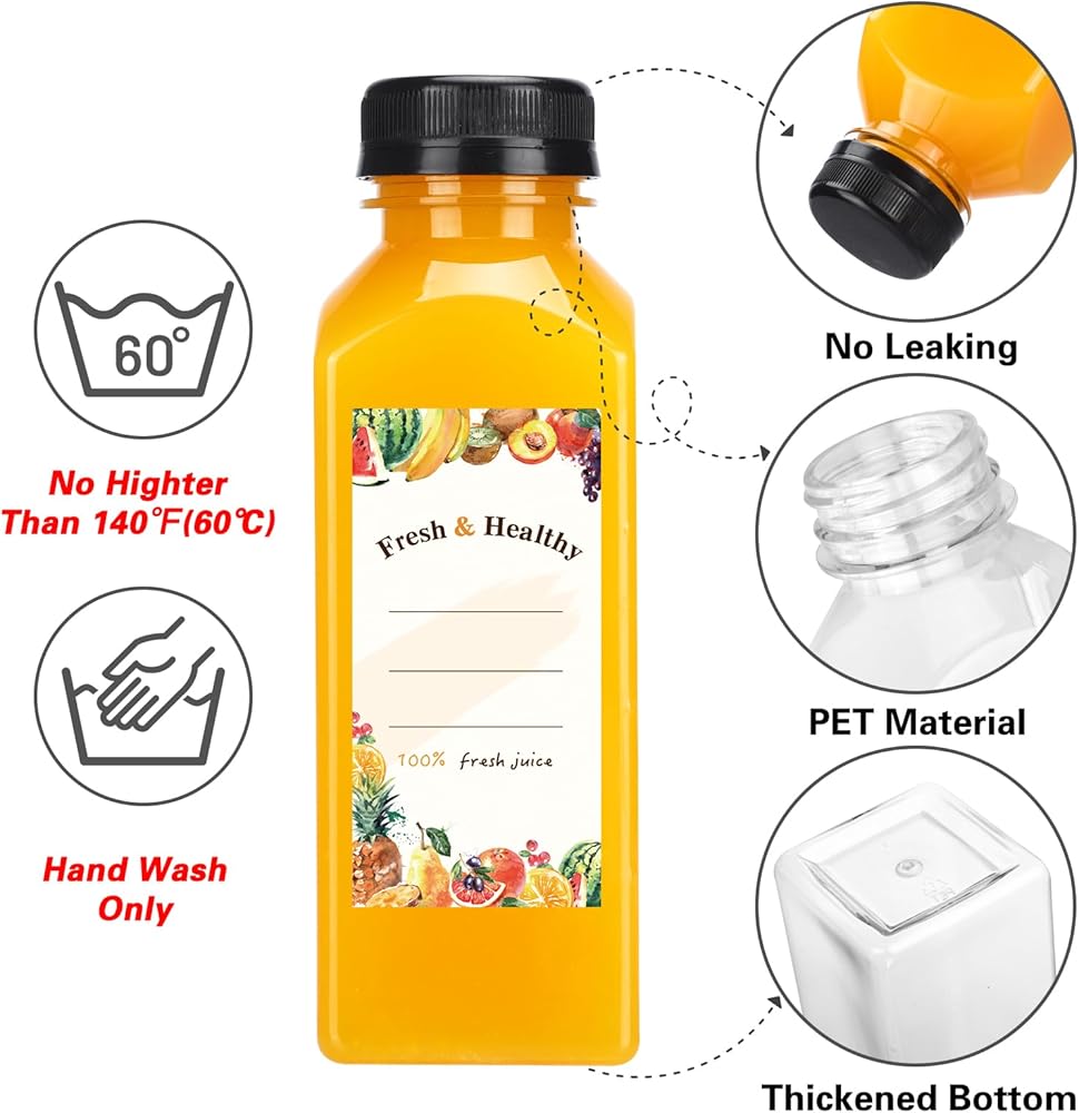 🥑 تصنيع منتجات متميزة: زجاجات العصير هذه مصنوعة من مادة البولي إيثيلين تيرفثالات الآمنة غذائيًا، مما يضمن استمرار استخدامها وآمنها. لكن لاحظ أنها ليست آمنة للاستخدام في غسالة الأطباق.