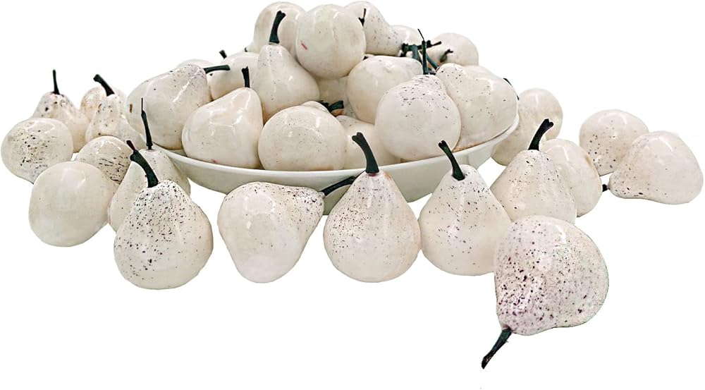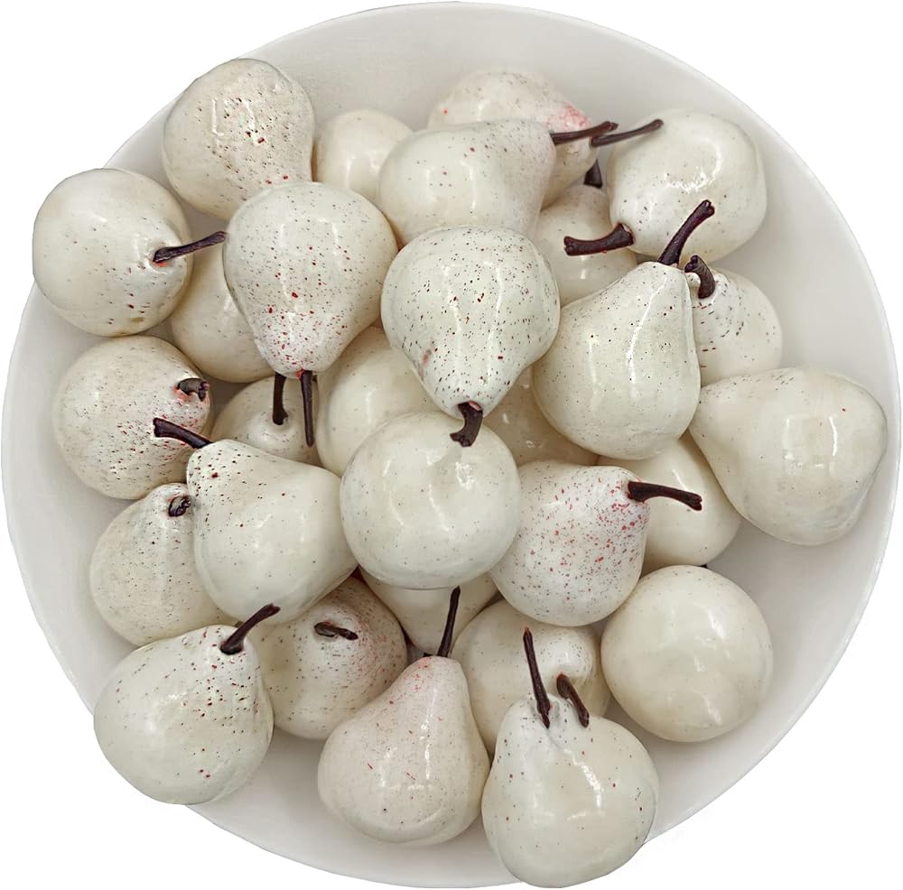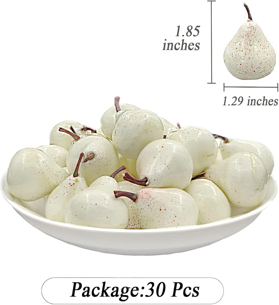 30 قطعة من الكمثرى البيضاء الصغيرة الواقعية، محاكاة الكمثرى النابضة بالحياة، نموذج كمثرى فواكه صناعية وهمية لدعائم التقاط الصور ديكور المنزل والمطبخ والحفلات