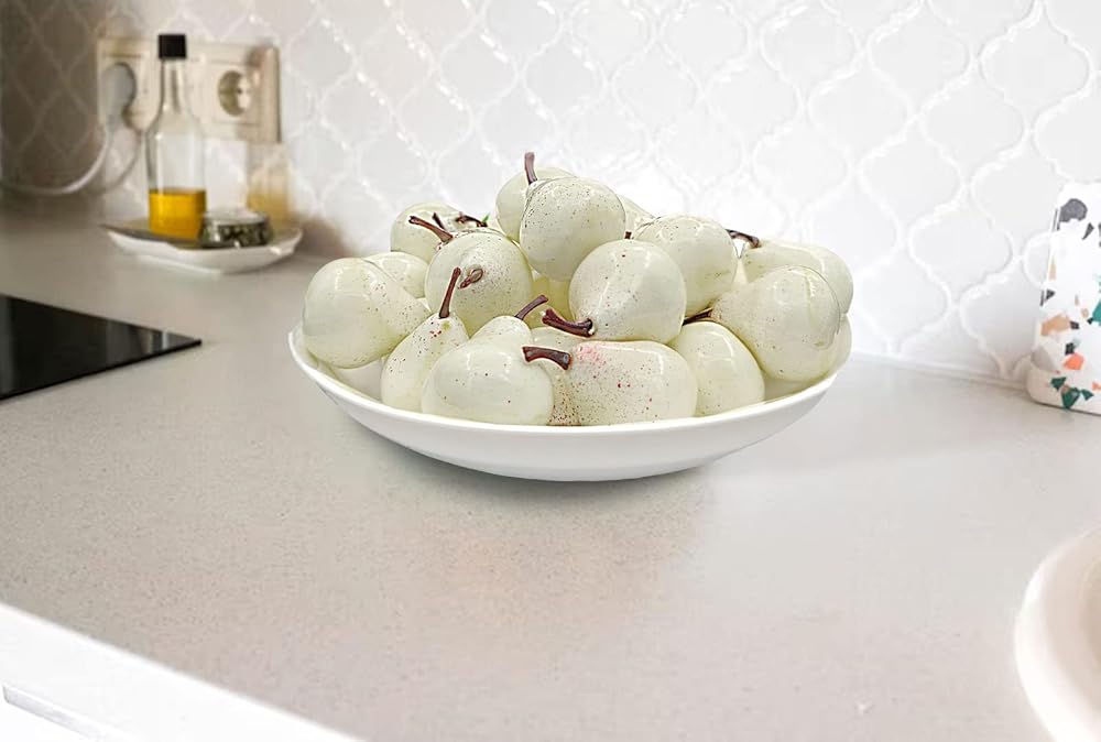 【Package of Fake Pears】This item contains 30 mini white fake pears.Dish not included.