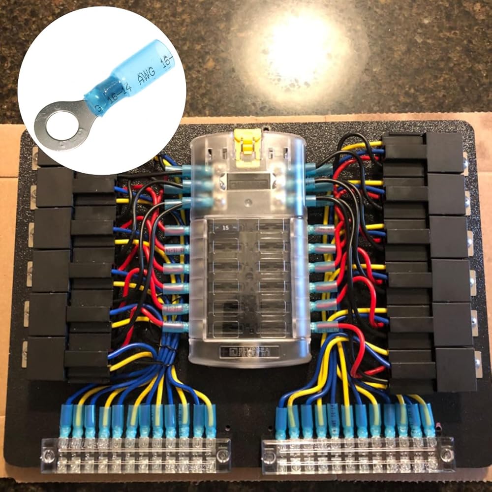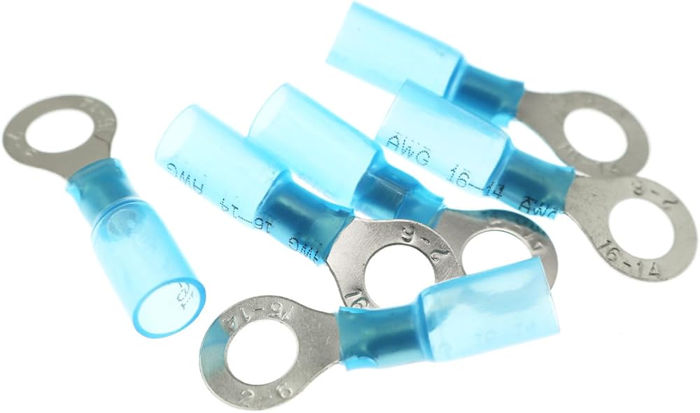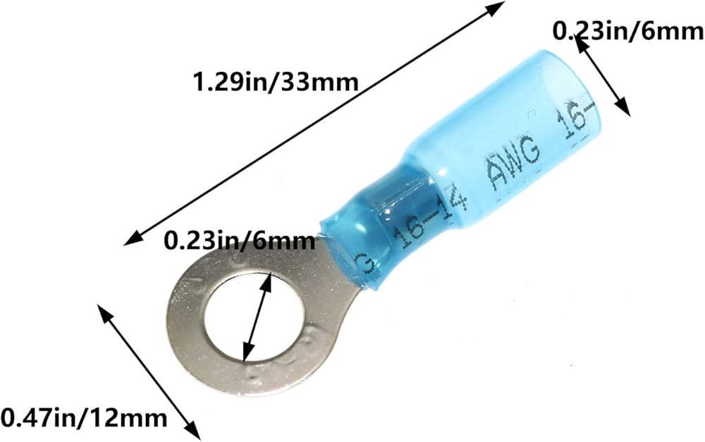 Name: Waterproof heat shrink terminal AWG16-14 (M6 round #1/4) blue