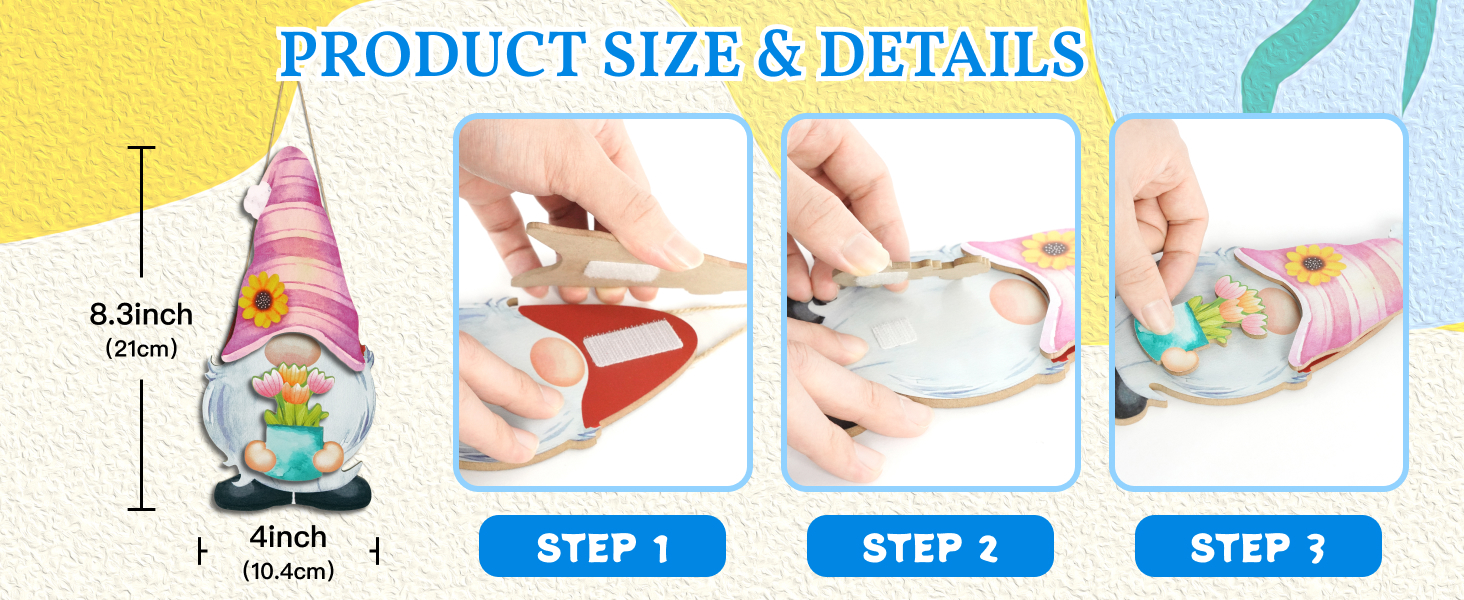 【وظيفة استخدام قابلة للتبديل】 انغمس في الروح الاحتفالية مع علامة الترحيب جنوم القابلة للتبديل من بوتو ديكور، والتي تضم 12 قطعة موسمية لعيد الميلاد وعيد الحب وعيد القديس باتريك وعيد الفصح والهالوين والحصاد وعيد الاستقلال والمزيد. يمكنك بسهولة تبديل الديكورات باستخدام نظام الخطاف والحلقة، مما يجعلها الزينة المثالية لبابك الأمامي أو الشرفة أو المدخل.