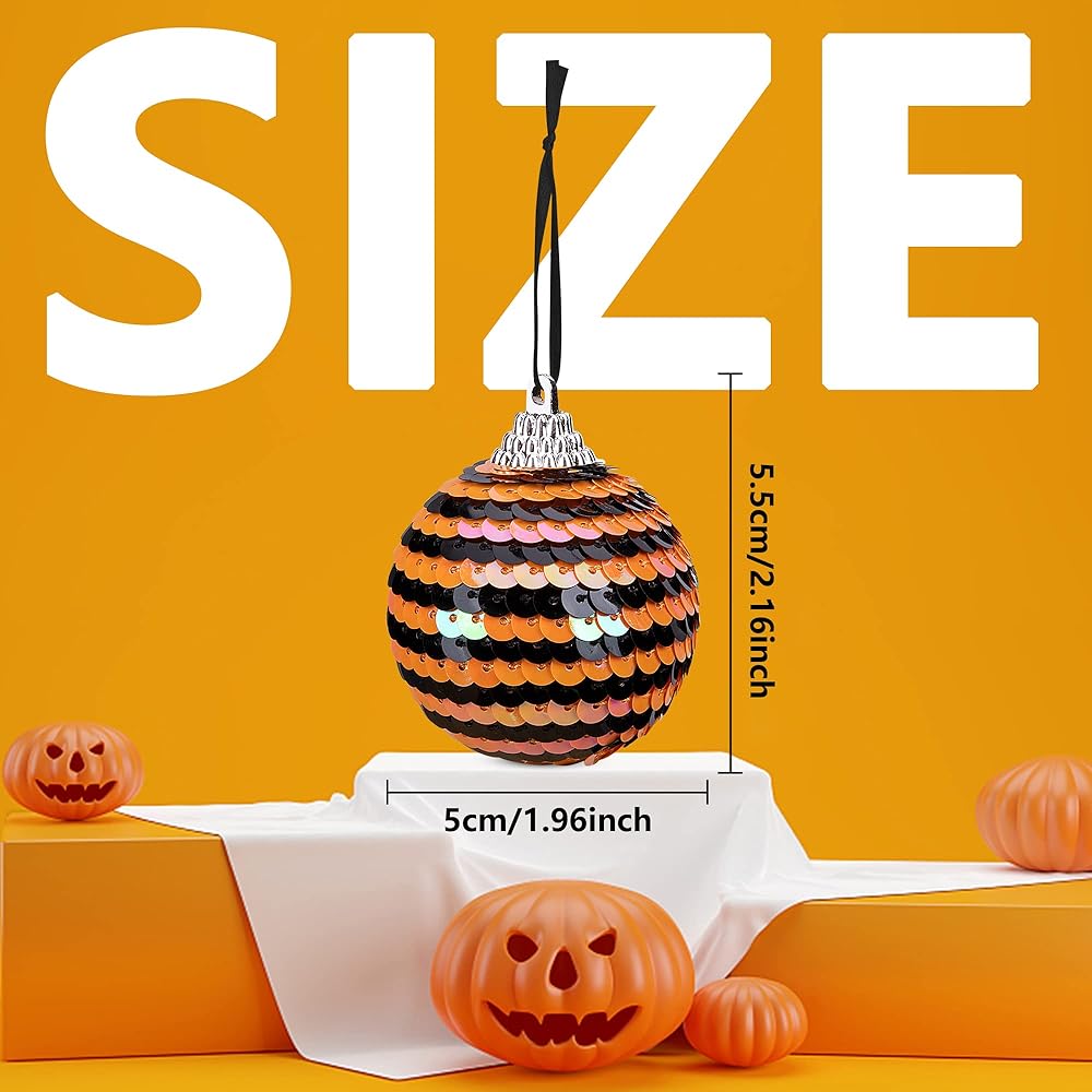 ديكورات احتفالية: هذه الحلي الكروية المعلقة مثالية لخلق جو احتفالي في الأماكن المغلقة أو الهواء الطلق في عيد الهالوين، وسوف تتناسب الكرة المعلقة بالترتر في الهالوين بشكل جيد مع الحفلات ذات الطابع الأسود والأبيض.