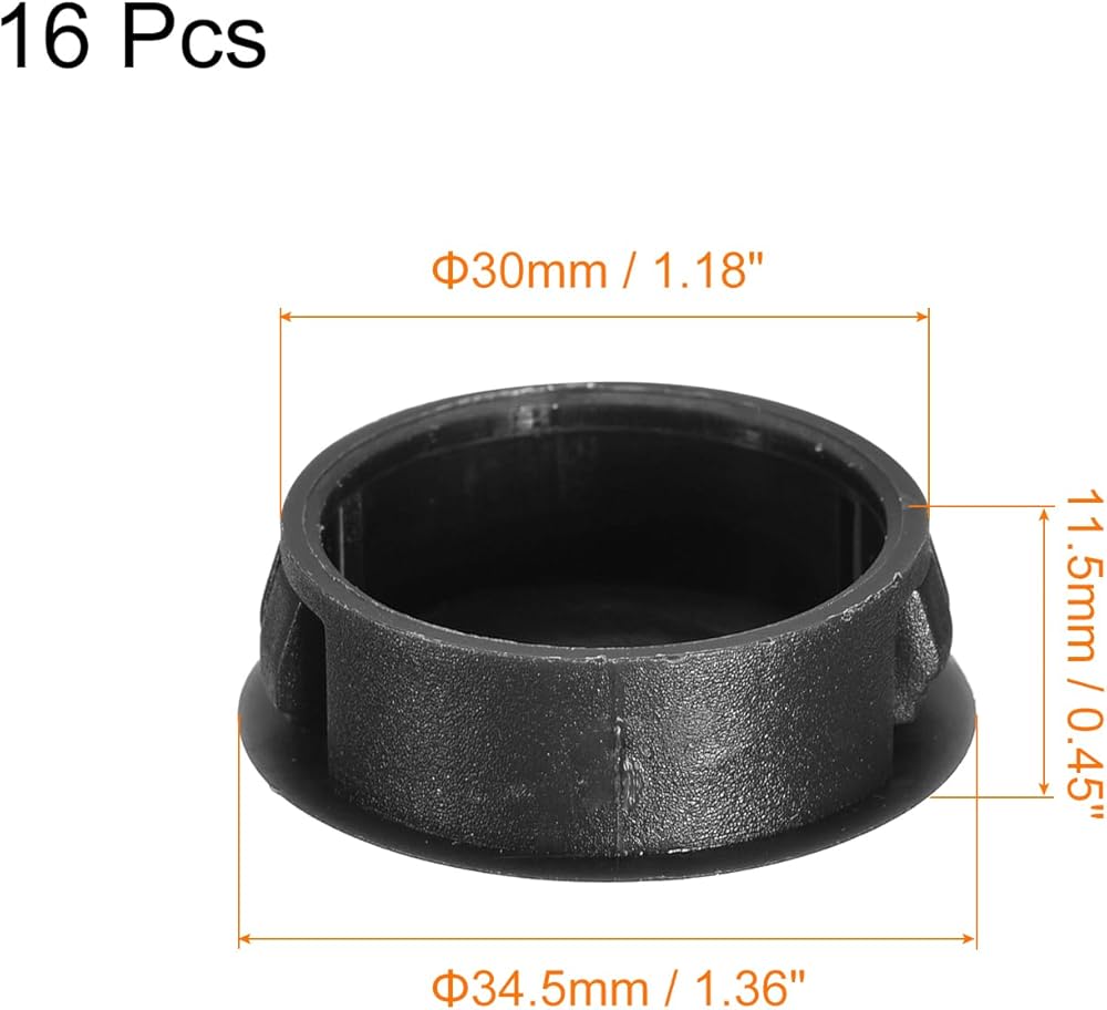 [سدادات ثقب بلاستيكية] - تحتوي العبوة على 16 قطعة من سدادات الضربة القاضية. قطر الغطاء: 40 مم/1.57 بوصة؛ القطر السفلي: 35 مم/1.38 بوصة؛ الارتفاع السفلي: 10 ملم (25/64 بوصة)؛ الارتفاع: 11 ملم / 0.43 بوصة