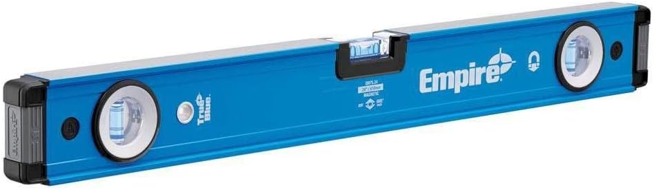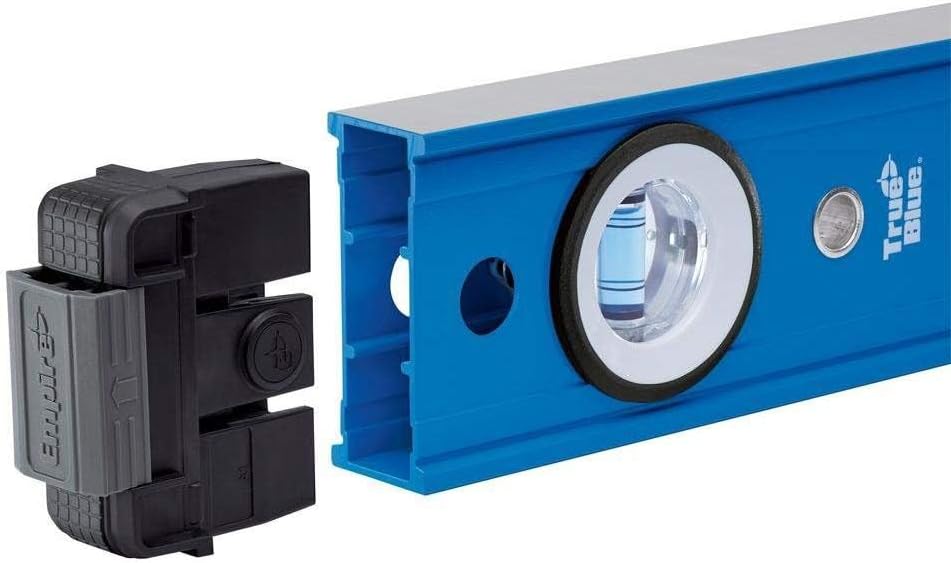 The True Blue Box Level offers superior performance in the key areas of functionality and durability. Powerful rare earth magnets provide superior holding strength. Highlights: Length: 24 inch Material: Aluminum Magnetic: Yes Level Type: Box Number of Vials: 3 vial Color: Blue/Black Application: Leveling Accuracy: 0.0005 inch Reinforced vial locking system secures acrylic block vials and delivers long life accuracy Tool-free removable, shock absorbing endcaps provide superior protection and scribing performance Precision milled edges for guaranteed accuracy Surface grippers prevent the level from sliding on flat or angled surfaces High contrast e-BAND vials highlight the edge of the bubble 300 degree viewing window maximizes range of view Hang hole for ease of storage e-Band vials are accurate to within 0.0005" per inch in all working positions
