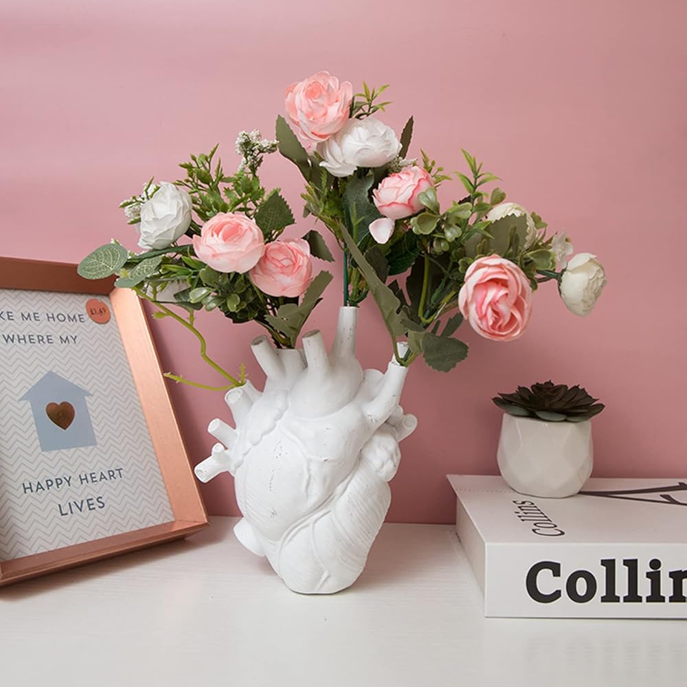 مزهرية على شكل قلب تشريحي من الراتنج على شكل قلب للزهور مزخرفة على شكل قلب أبيض مزهرية لسطح المكتب زخرفة حديثة على شكل قلب زهرة مزهرية فنية للمنزل
