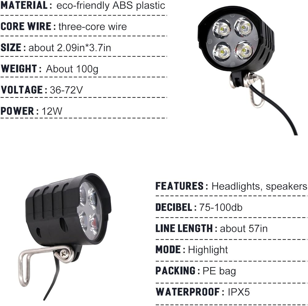 Super Bright Bicycle Light: Bicycle lights with 4pcs super bright light beads,Power:12W,Voltage:36-72v,allow cyclists to have enough visibility and ride safer at night.