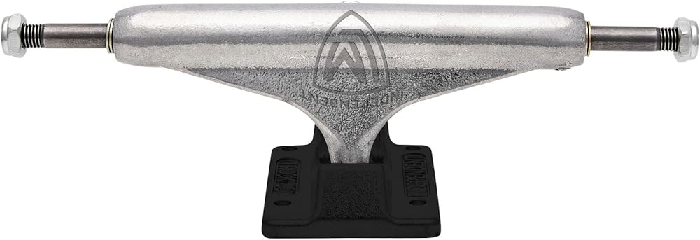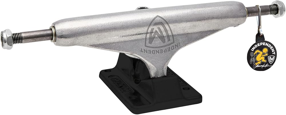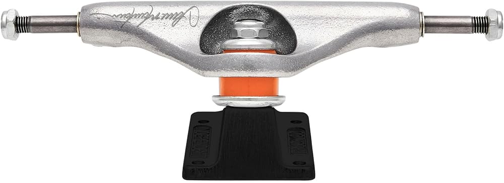 Independent Truck Company Lance Mountain Pro Stage 11 Hollow trucks featuring polished silver hanger with Indy LM and signature laser etched logos, anodized black baseplate, classic Indy orange cushions, and silver hardware. Included Lance Mountain graphic punk pin keychain. Lightweight version of Stage XI with hollow axle & kingpin. Durable all purpose truck for any type of skateboarding. 7% lighter than Stage XI. 55mm tall for optimal performance and wheel clearance with wheels 56mm and under. A356 T6 Aluminum Hanger & Baseplate; The best lightweight aluminum alloy heat treated to T6 condition for strength, durability, and grind feel. Hollow Chromoly Axle & Kingpin; Highest quality hollow Chromoly steel for durability and weight saving. 159 and 169 models features 6 hole universal baseplate with old and new school mounting pattern.