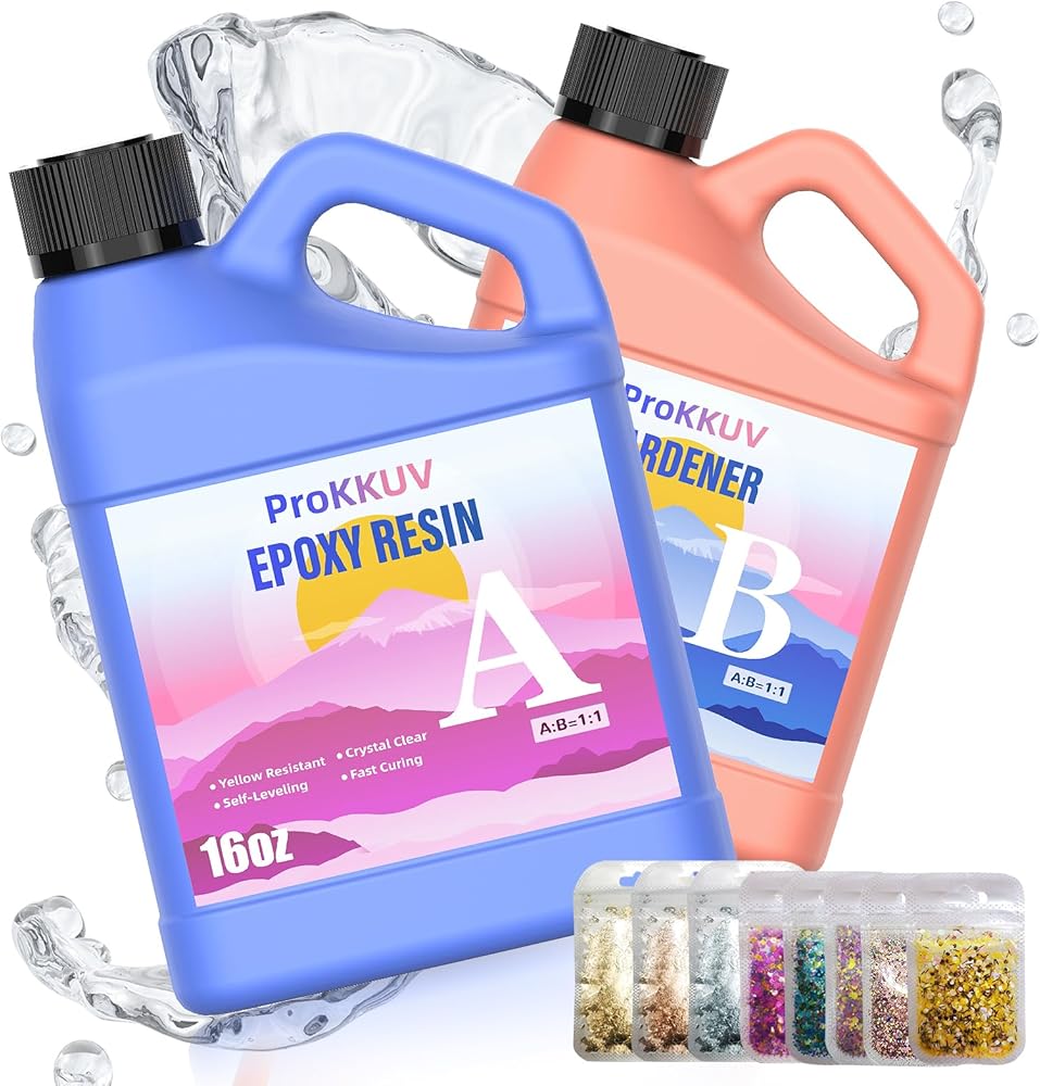 【شفاف كريستالي وعالي اللمعان】توفر تركيبة راتنجات الإيبوكسي ProKKUV لمسة نهائية شديدة اللمعان بدون عيوب ولا تحتاج إلى تلميع. يمكنه مقاومة الحرارة والخدش والحفاظ على نظافته دون الاصفرار، مما يحمي أعمالك الفنية والألوان الجميلة من أجل ثبات ويدوم طويلاً