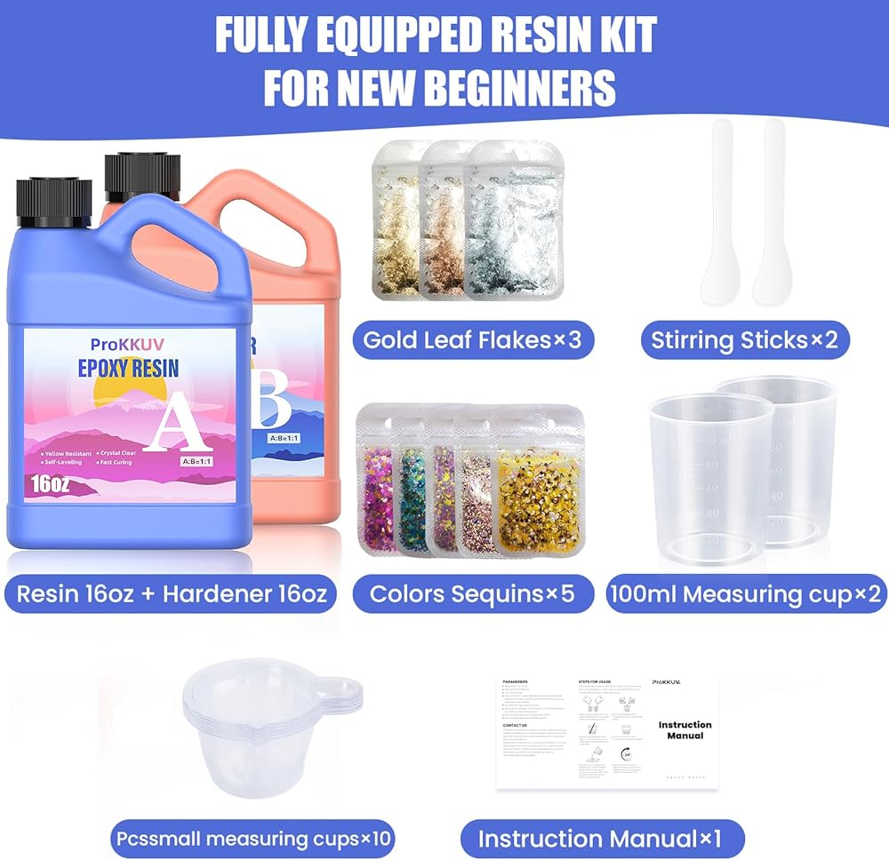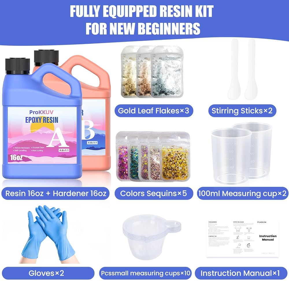 【مجموعة صياغة كاملة】تتضمن 946 مل من الراتنج الشفاف، ومقوي شفاف 946 مل، و2 × أعواد تقليب شفافة، و1 × أعواد تقليب بلاستيكية، وقفازات 2. تأتي مجموعة الراتنج هذه مع جميع المواد والأدوات المطلوبة