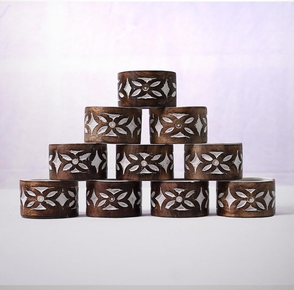 Fantastic Table Decoration! When gathering with friends or enjoying a warm family dinner, it is not only necessary to prepare delicious food on the table but also something exquisite to adorn the table. Our wood napkin rings is one of the important decorations. Handcrafted by skilled woodworkers in India, the handmade wood napkin rings set is truly of the absolute best quality. Give your table an elegant look, and you will receive many compliments at the party. These modern napkin rings can be used at home, in the office, in hotels, restaurants, bars, cafes, stores, and many other places. Also suitable for wedding anniversaries, candlelight dinners, Christmas, New Year, anniversary holidays, birthdays, banquets, party evening table decorations, and any other special occasions. The durability of the napkin rings, absorbent material, and eye-catching design make them a perfect gift for family and friends.