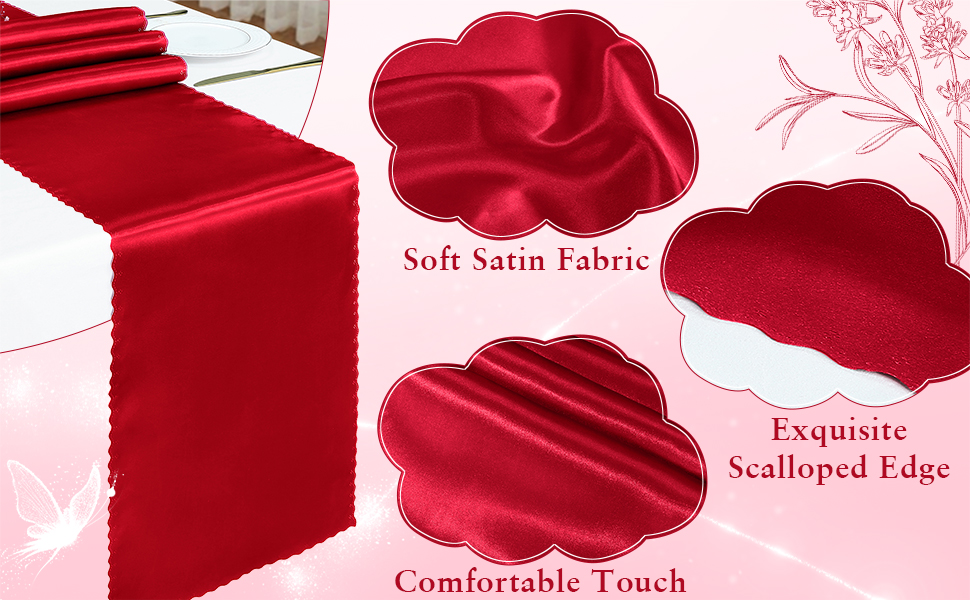 Satin runners are made of high-quality satin fabrics, which have a smooth and soft touch, are not easy to fade and wrinkle. Wavy edge design adds romance and elegance to your dining table