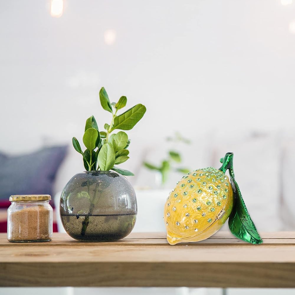 Holibanna البنصر تخزين حالة صندوق مجوهرات يتوقف الزخرفية المينا حجر الراين الليمون مجوهرات حلية مربع ليمون حزب ديكور DIY حلية مربع