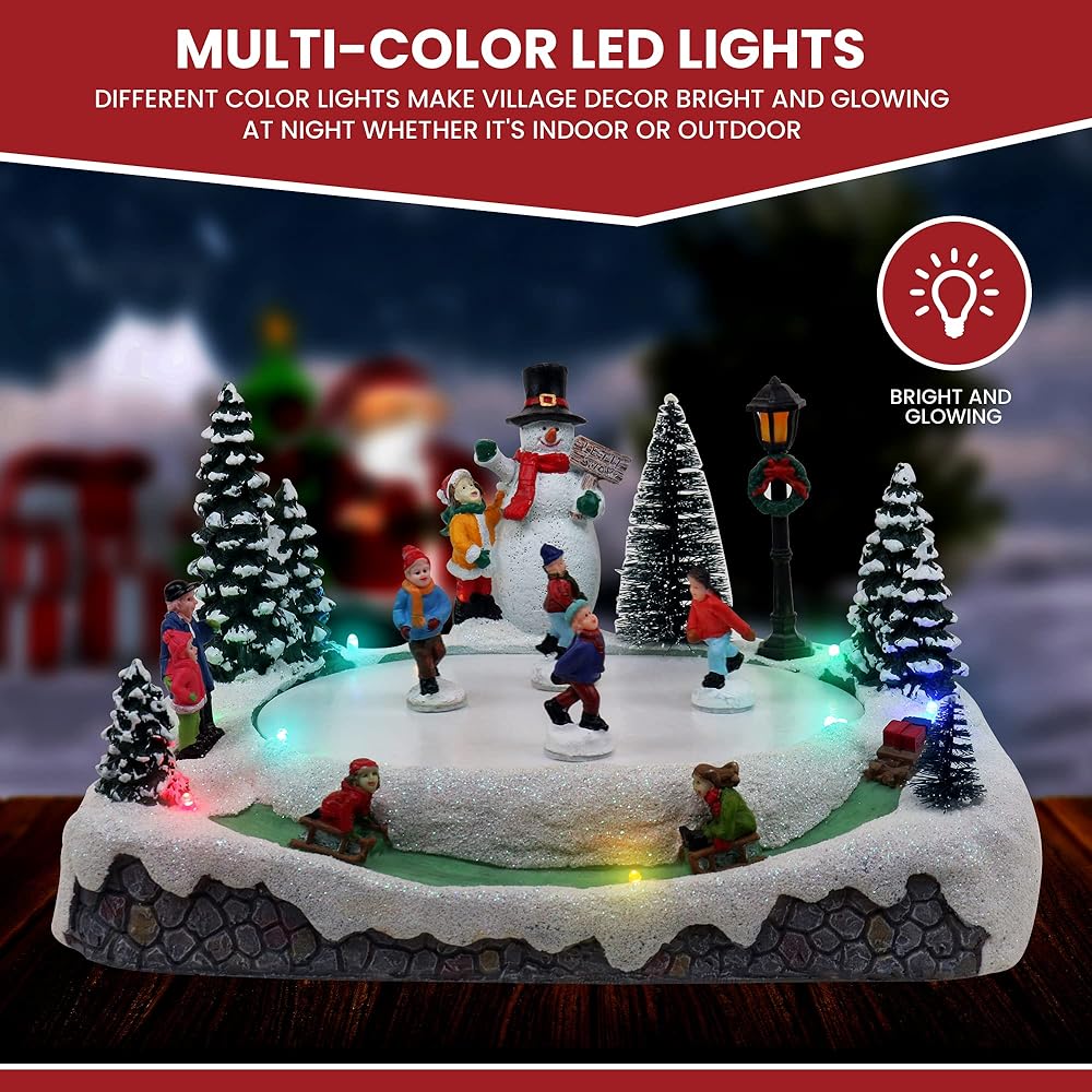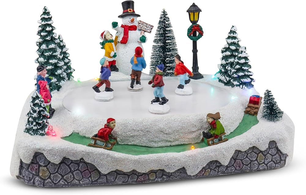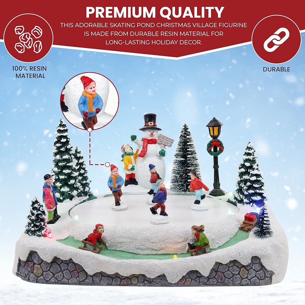 متعددة الاستخدامات - استخدم بركة التزلج الموسيقية في قرية عيد الميلاد المضاءة بمصابيح LED، جنبًا إلى جنب مع مجموعات قرية عيد الميلاد الأخرى، كقطعة مركزية لعروض العطلات الخاصة بك أو أضفها إلى مجموعة قرية الثلج الخاصة بك. إنه تمثال متعدد الاستخدامات وقابل للتجميع سيضيف السحر إلى أي غرفة.