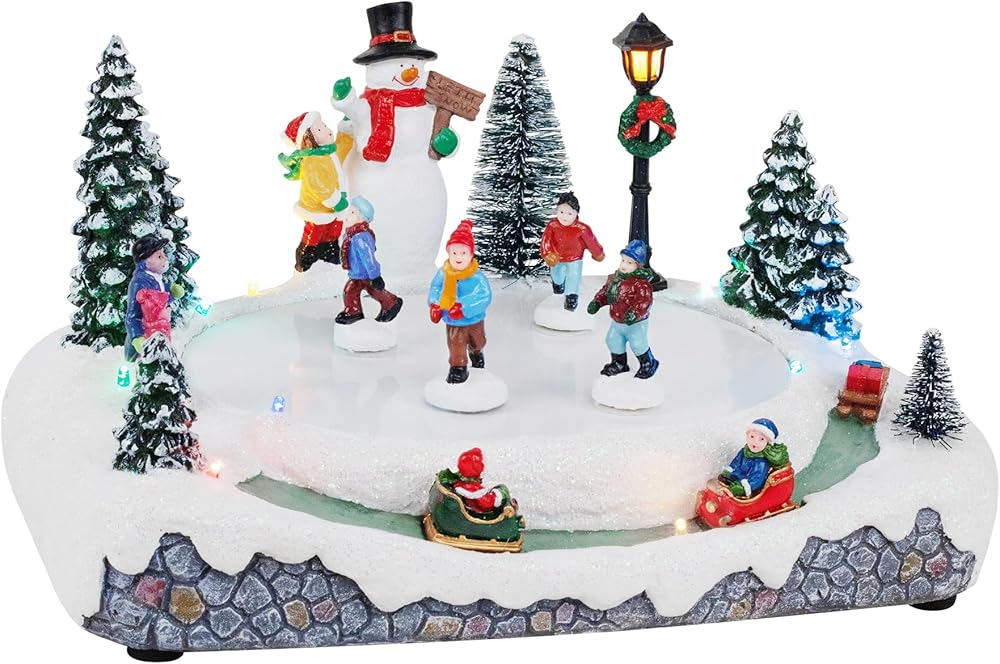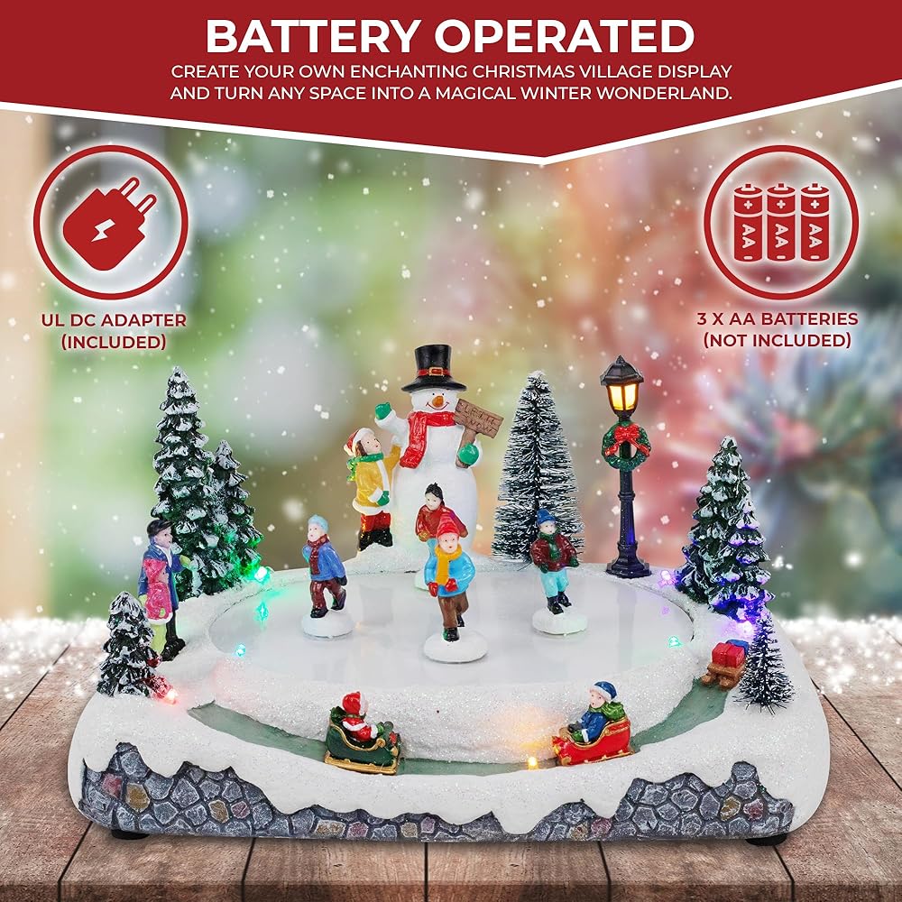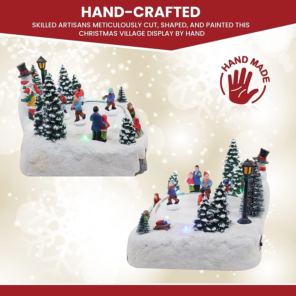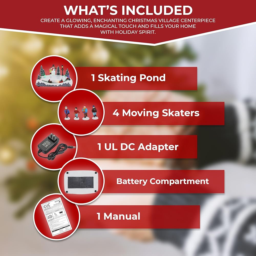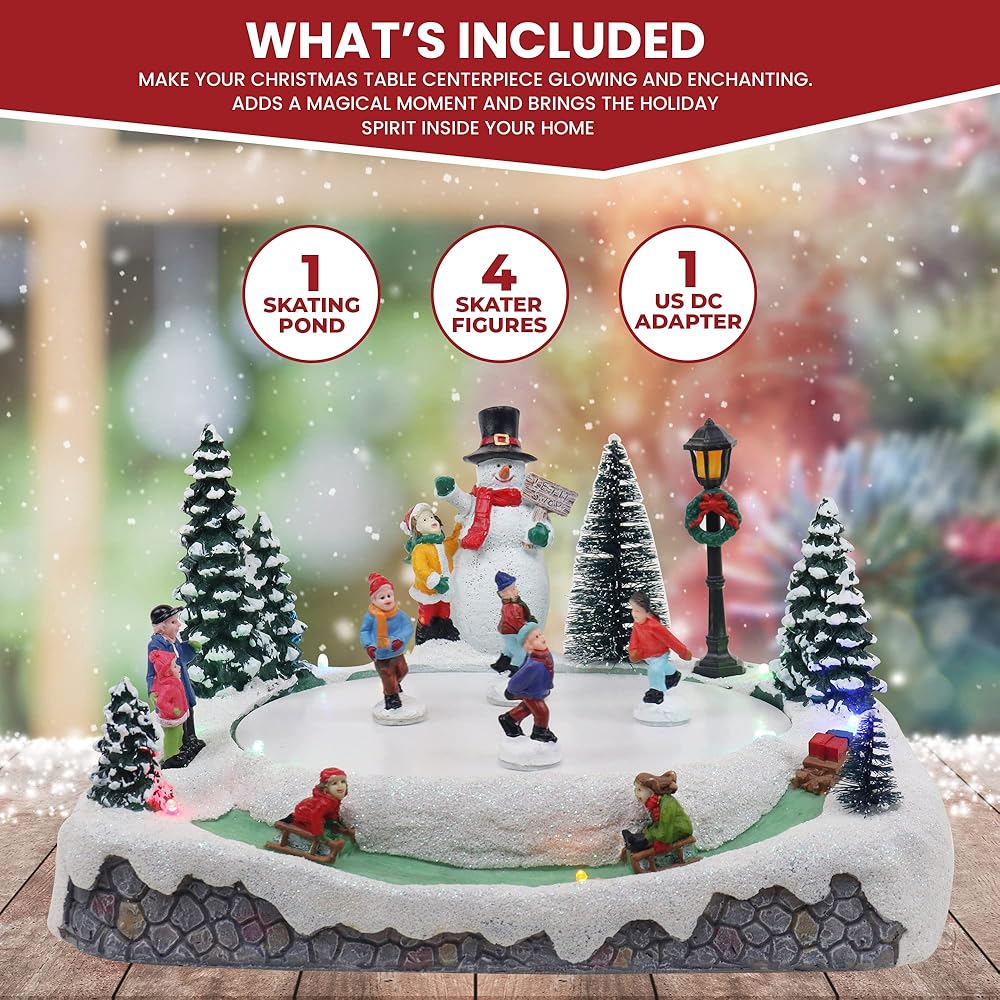 واقعية - بركة التزلج في قرية عيد الميلاد المضاءة مسبقًا مع المتزلجين على الجليد، وهي إضافة مثالية لأي قرية في عيد الميلاد، واقعية للغاية لدرجة أنك ستشعر وكأنك في أرض العجائب الشتوية! أضف قرية الثلج المتحركة هذه إلى زينة عيد الميلاد الداخلية الخاصة بك وقم بإنشاء عرض عطلة سحري.