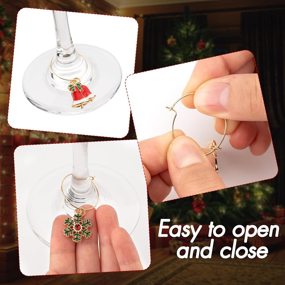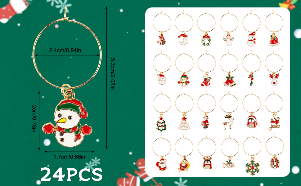 • المقاس: يبلغ حجم حلية كأس نبيذ عيد الميلاد حوالي 0.6-0.8 بوصة، ويبلغ قطر الحلقة حوالي 1 بوصة.