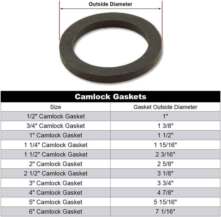 Sterling Seal & Supply proudly offers a full line of CAMLOCK gaskets in multiple quantity packs and materials for Amazon. Lathe cut gaskets far excel vs die cut, water cut or flash cutting for CAMLOCK style gaskets. Our manufacturer specializes in producing cylindrical rubber tubes with precision ground surface finishes. Initially, the tubing is vulcanized in a high-pressure autoclave, which uses a precision mandrel to form the inside diameter. Once the tube is cured, the product is ground on specialized lathe-type grinding machines. This operation finalizes the outside diameter (OD) or wall thickness to the proper specification. The desired cut thickness is achieved by using a specialized carbide cutting tool on computer controlled automatic cutting machines. Where are these gaskets typically used? Camlock gaskets are used for cam and groove couplings. A cam and groove coupling, also called a Camlock fitting, is a form of hose coupling. This kind of coupling is popular because it is a simple and reliable means of connecting and disconnecting hoses quickly and without tools. We now stock for Amazon White Buna FDA, Black Buna, Green FKM-Viton, and black EPDM; All quantities readily available for 24 hour immediate shipping.