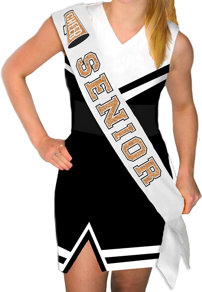 • PREMIUM SATIN SASH FOR HIGH SCHOOL & COLLEGE SENIORS! This fun sash says “Cheer Senior” in a bold Collegiate font with a Cheer megaphone graphic.
