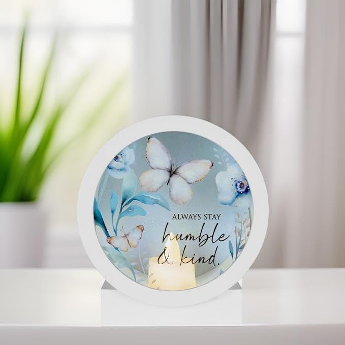 Unique Butterfly Design: Featuring a round white shadowbox lantern with flowers, butterflies and "Always Stay Humble and Kind", this white butterfly lantern makes a unique addition to display indoors for a unique nature-inspired touch.