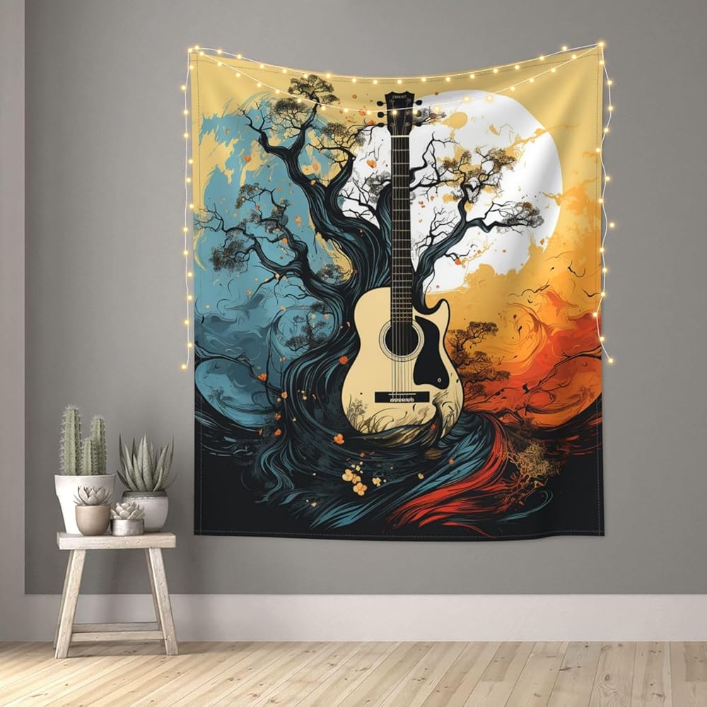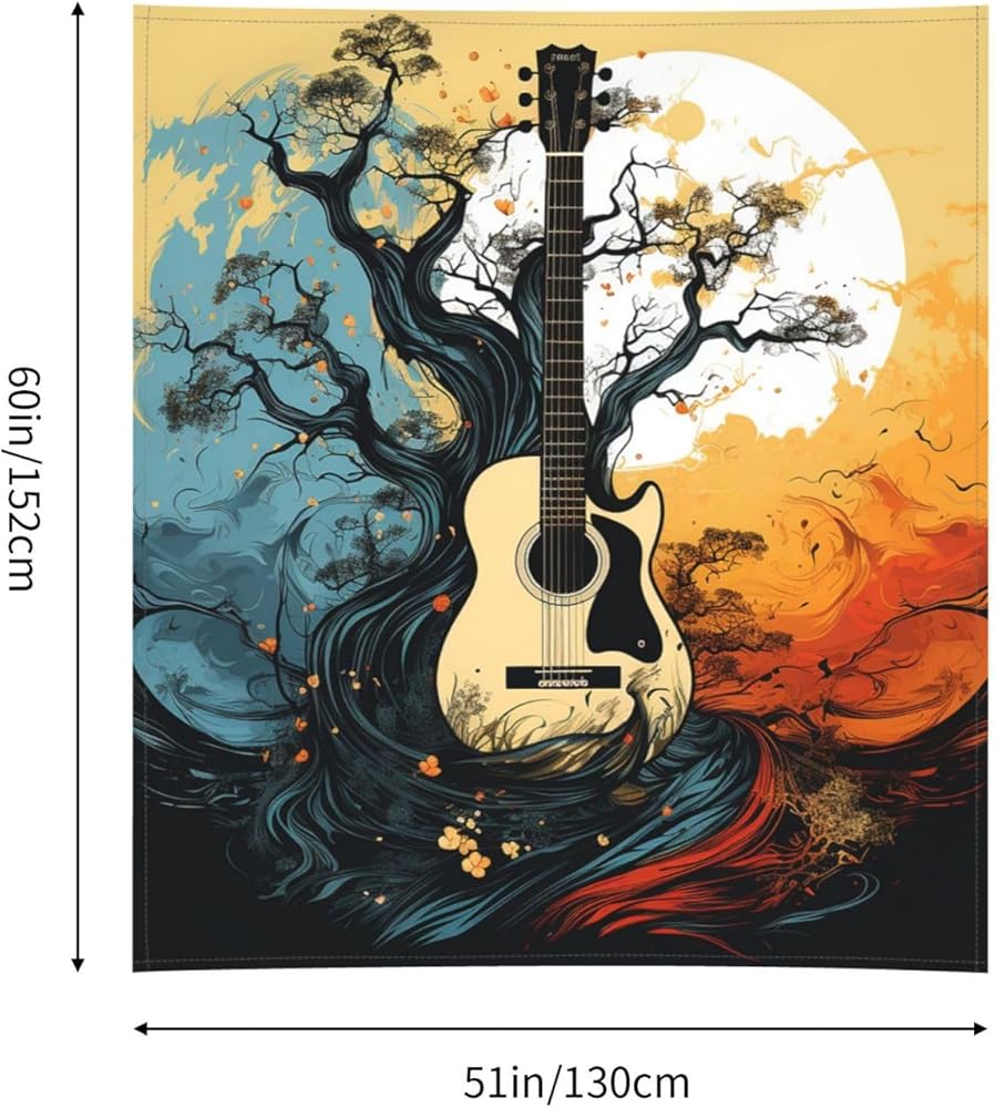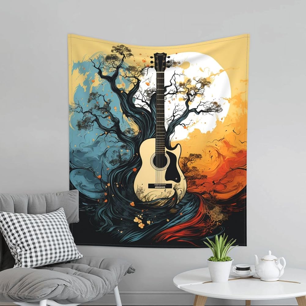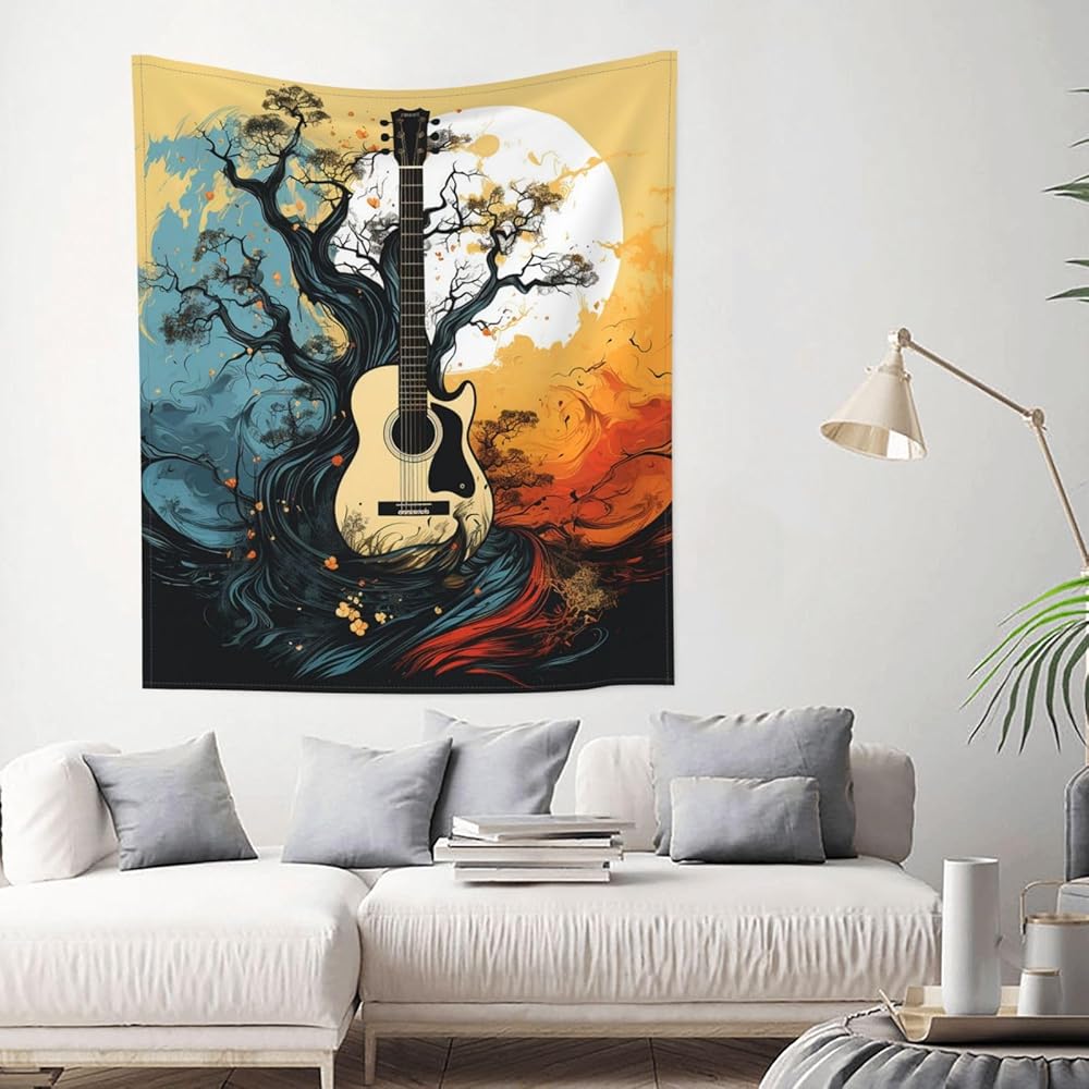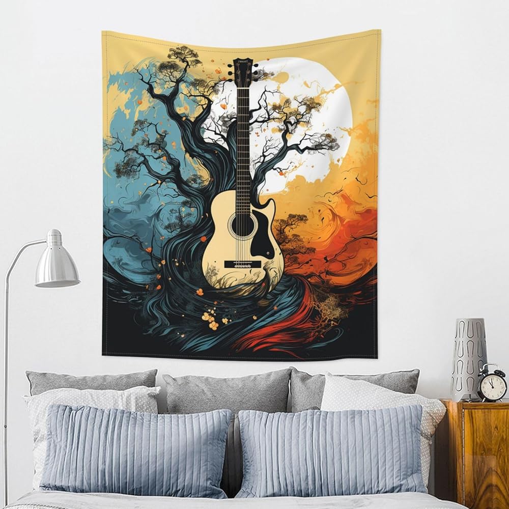 ALHAAHLL غيتار مجردة يين يانغ خمر نسيج عمودي الجدار شنقا المفروشات للمنزل غرفة نوم غرفة المعيشة النوم الديكور الجمالي 60 × 51 بوصة