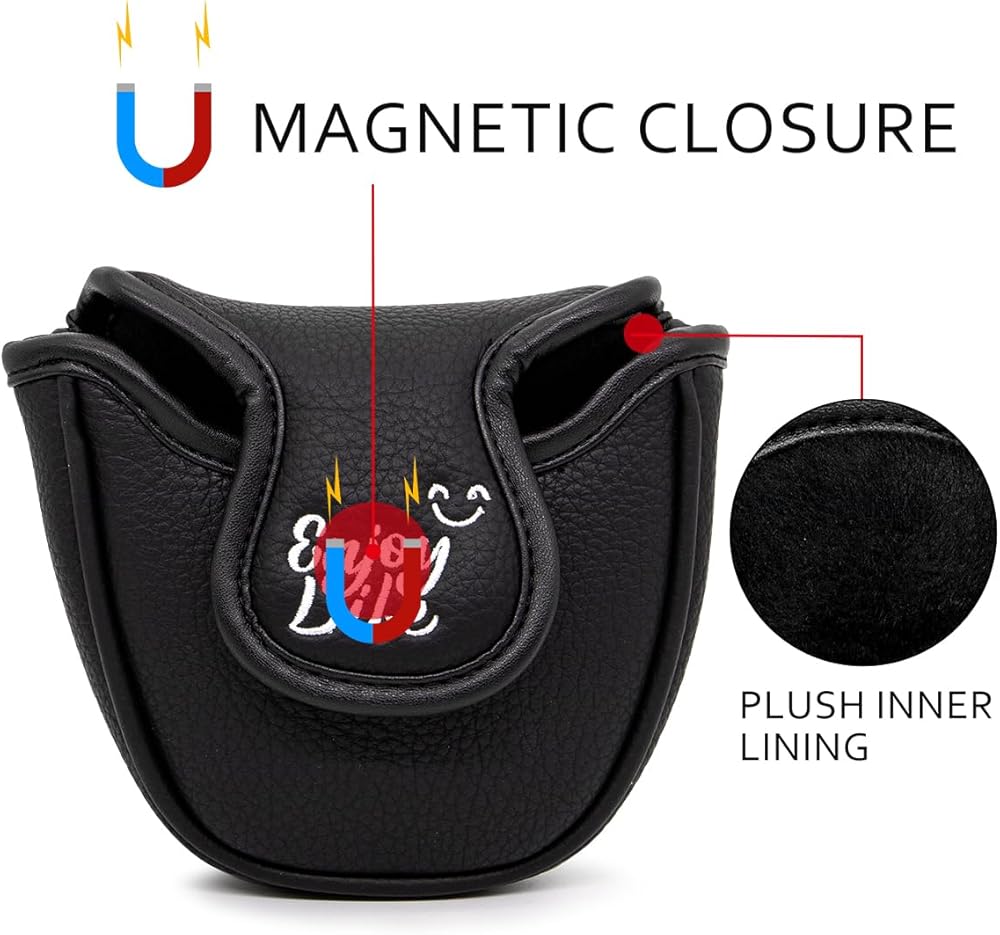 This putter cover is made of high quality synthetic leather, which is waterproof and dust resistant. The mallet putter headcover features a magnetic closure for easy access and protection. This putter cover fits for Odyssey 2Ball Putters. This golf putter head cover is a perfect gift for golfers on any occasion.