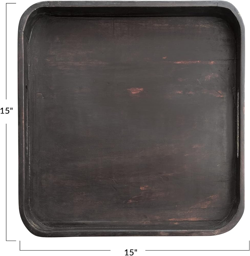 This rustic solid wood tray features a classic silhouette and a stylishly distressed finish
