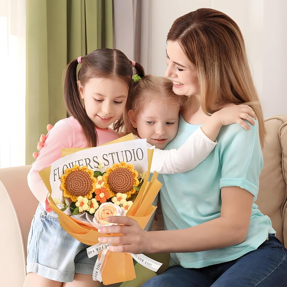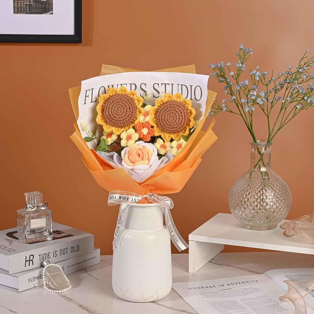 • مواد عالية الجودة: جميع زهور الكروشيه الموجودة في الباقة تم حياكةها من خيوط قطن الحليب، مما يجعلها ناعمة وغير ضارة ومناسبة للأشخاص الذين يعانون من حساسية الزهور.
