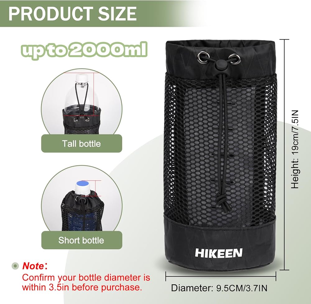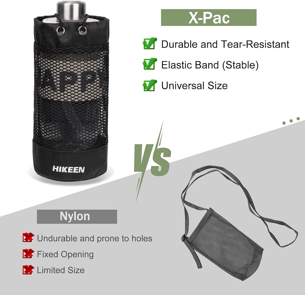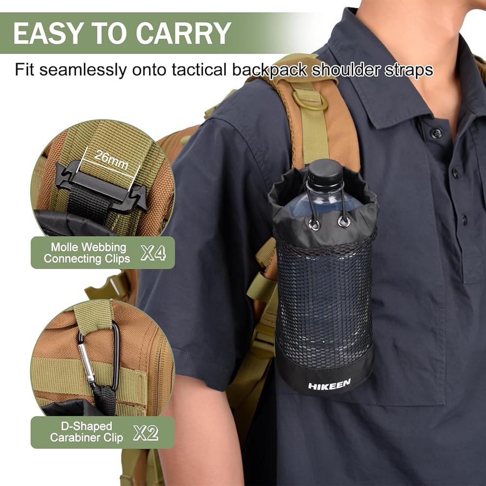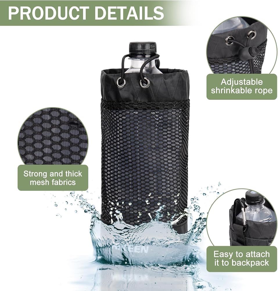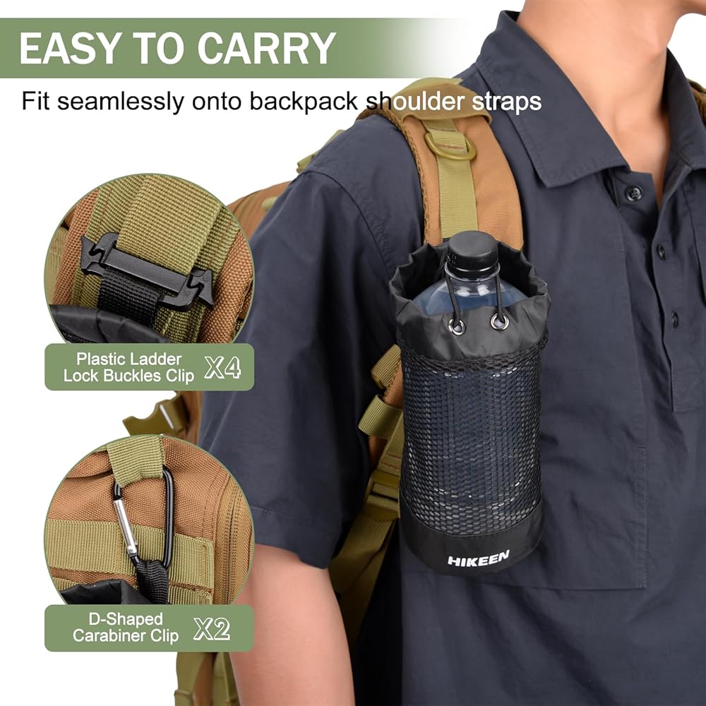 حامل زجاجة مياه على الظهر من Hikeen X-PAC، جراب زجاجة مياه قابل للطي مع رباط مفتوح، حامل زجاجة مياه شبكي خفيف الوزن مقاوم للاهتراء مع حلقة تسلق للسفر والمشي لمسافات طويلة والأنشطة الخارجية