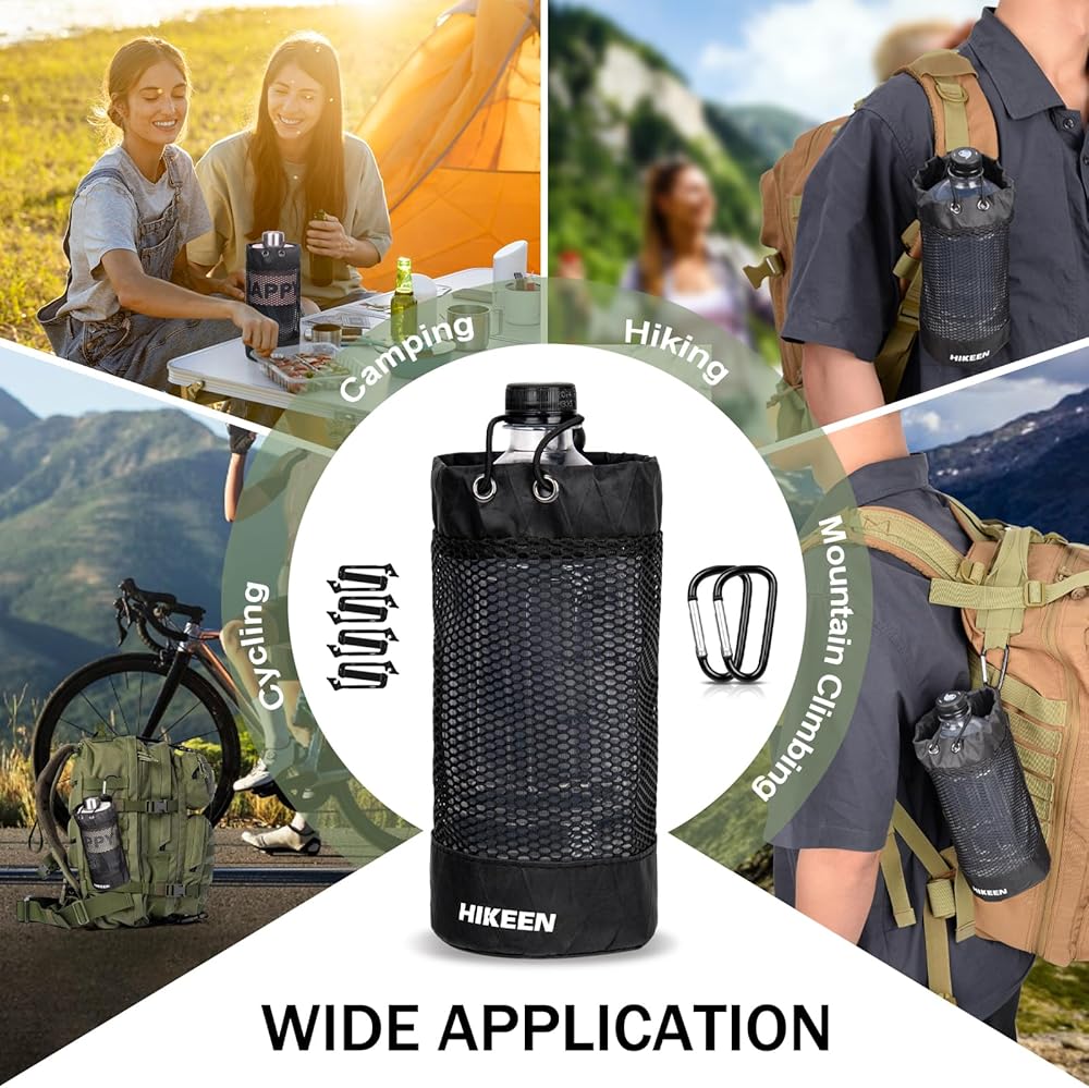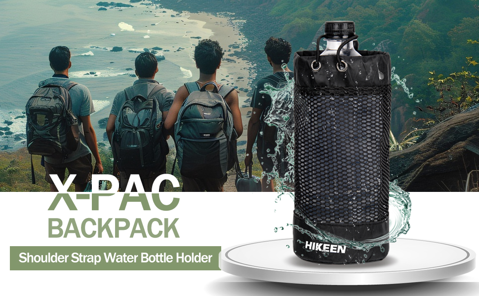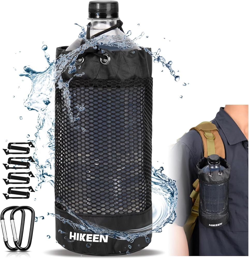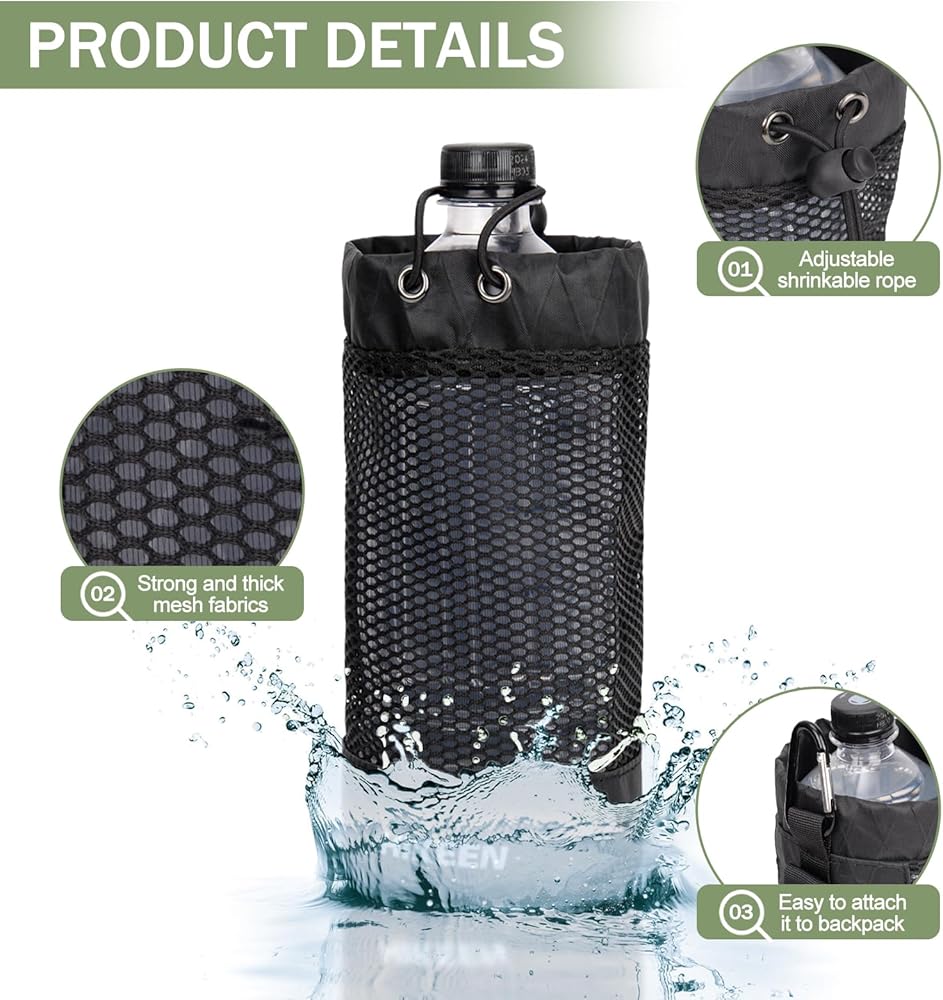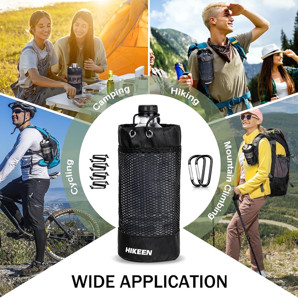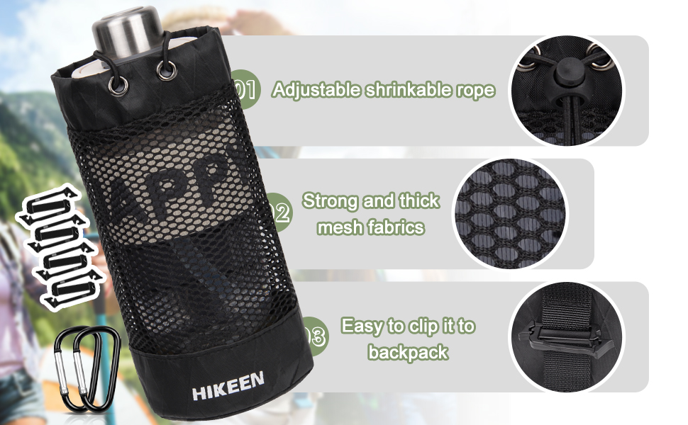حامل زجاجة مياه على الظهر من Hikeen X-PAC، جراب زجاجة مياه قابل للطي مع رباط مفتوح، حامل زجاجة مياه شبكي خفيف الوزن مقاوم للاهتراء مع حلقة تسلق للسفر والمشي لمسافات طويلة والأنشطة الخارجية